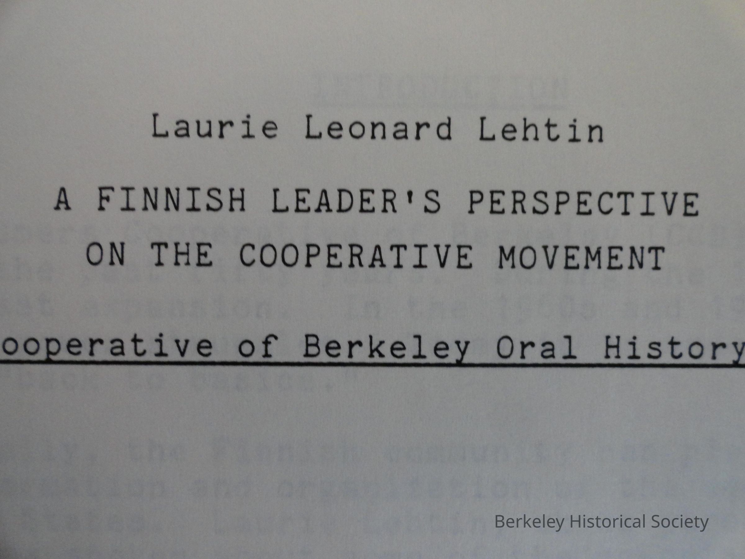 Oral History, Finns, Consumers Cooperative of BerkeleyPublication Details