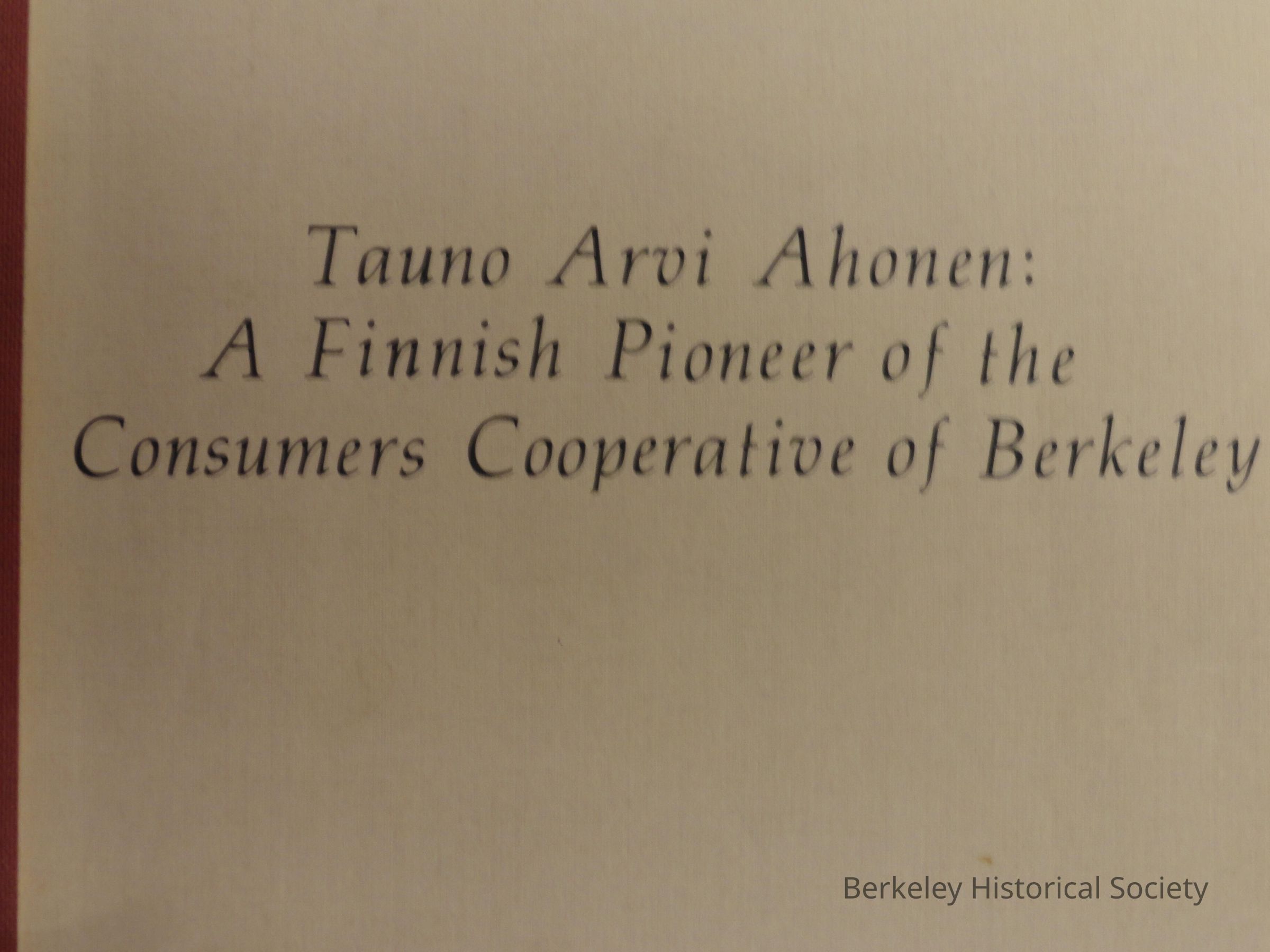 Finnish pioneer of the Consumers Cooperative of BerkeleyEntry/Object ID