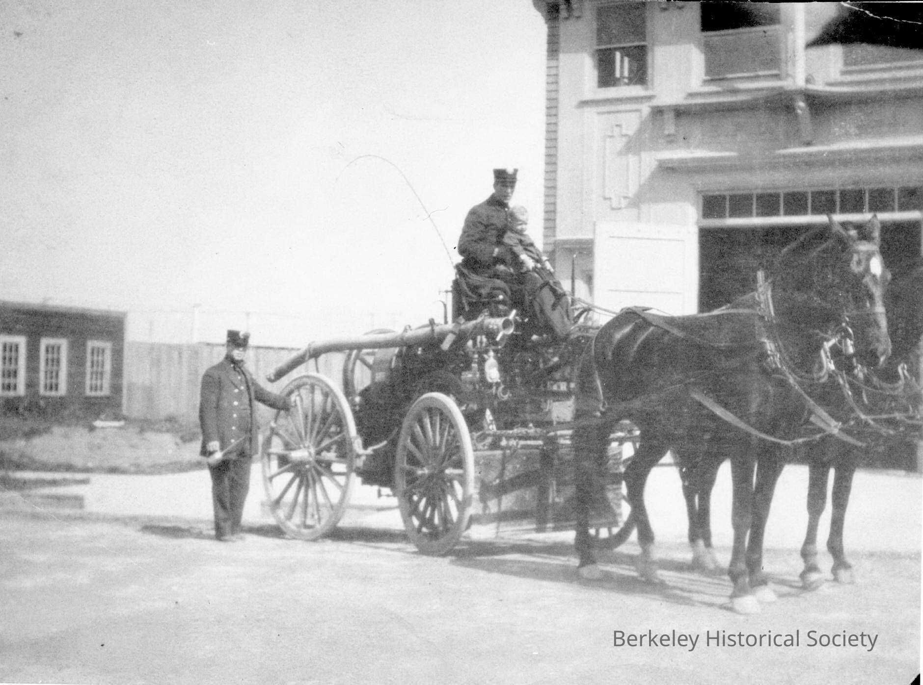 Fire Department horse drawn hose truck with crew and team Abernathy, Bob