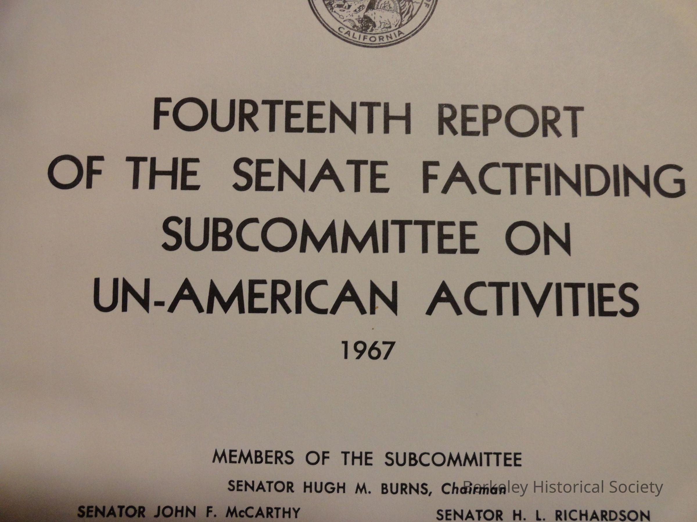 Fourteenth Report of the Senate Factfinding Subcommittee on On UnAmerican Activities 1967