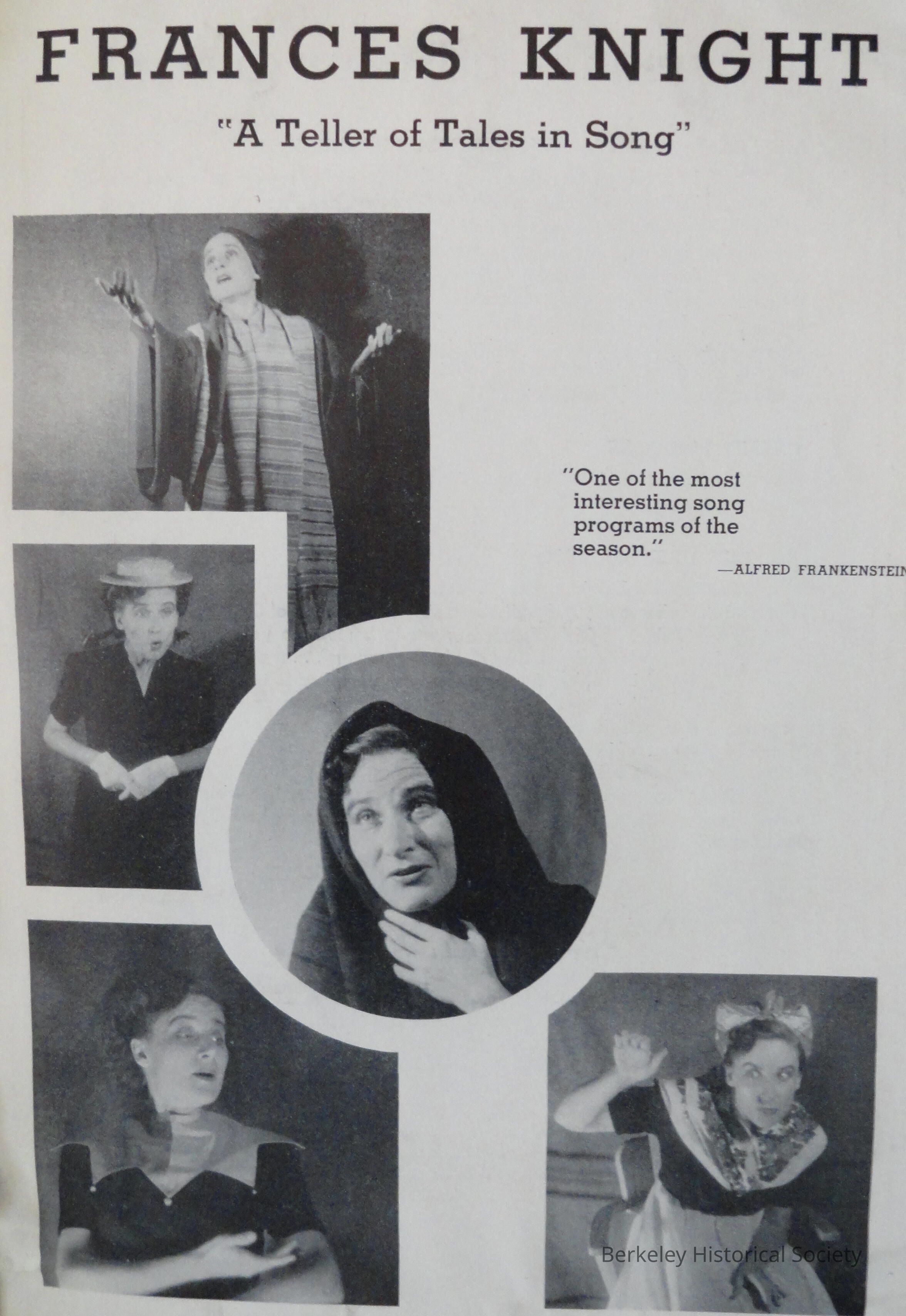 Includes programs, press clippings, photographs of her career as "A Teller of Tales in Song."