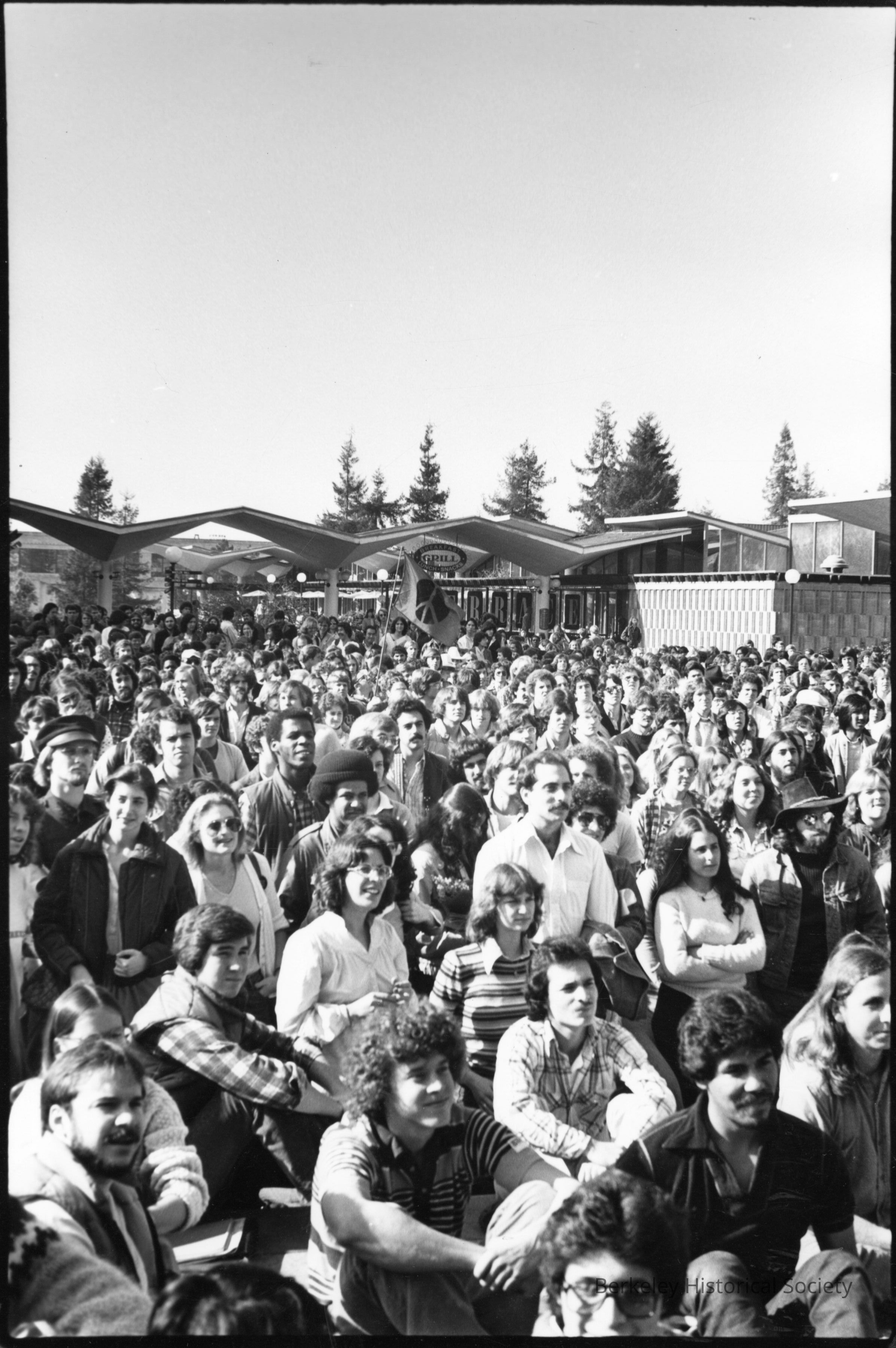 Free Speech Protest Sproul Plaza completely filled with people.