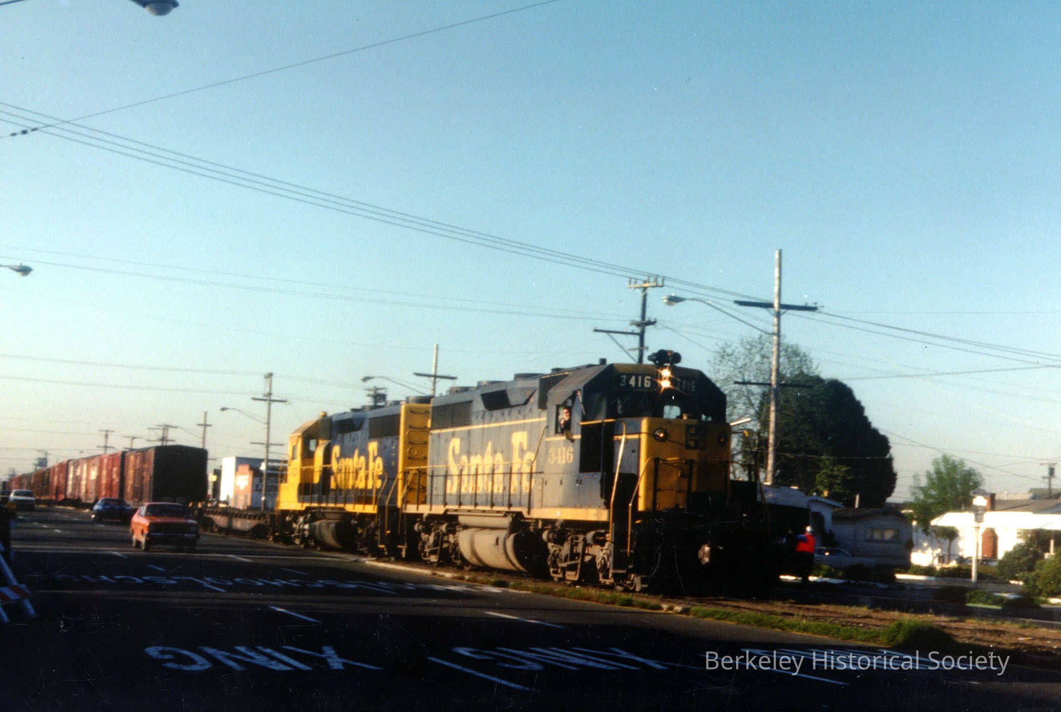 BW At & SF Last Freight - Engine 3416 . Sacramento Street at Russell