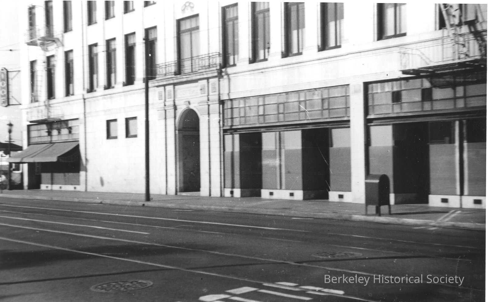 Portion of building from across Bancroft, looking towards Shattuck. IOOF sign at Shattuck corner of building at far left.Made/Created