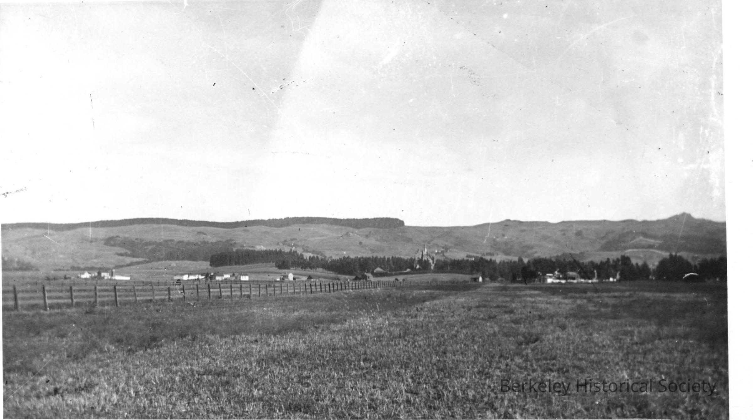 Empty fields, looking east towards hills., 1900 Gilman & 8th Peralta Hotel center of picture
