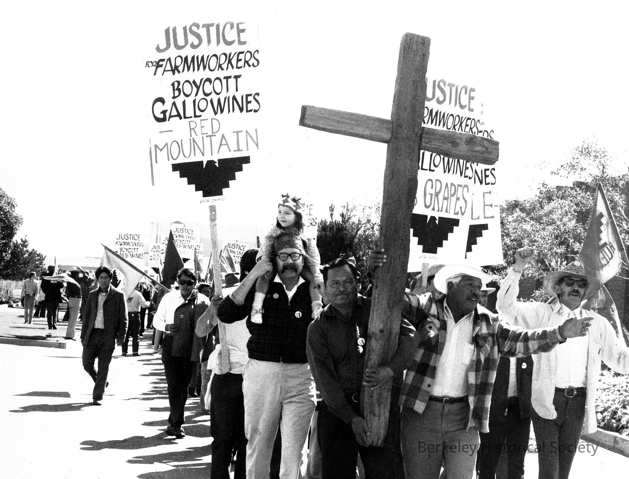 S. Murillo carrying cross, urging boycott of Gallo Wines; Justice for Farmworkers.Other Names and Numbers