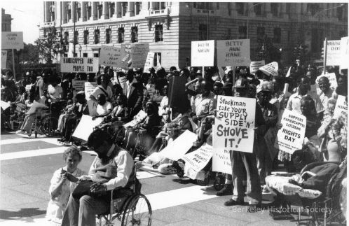 Crown with various signs, including one protesting supply-side economics. Photo taken in San Francisco.Other Names and Numbers