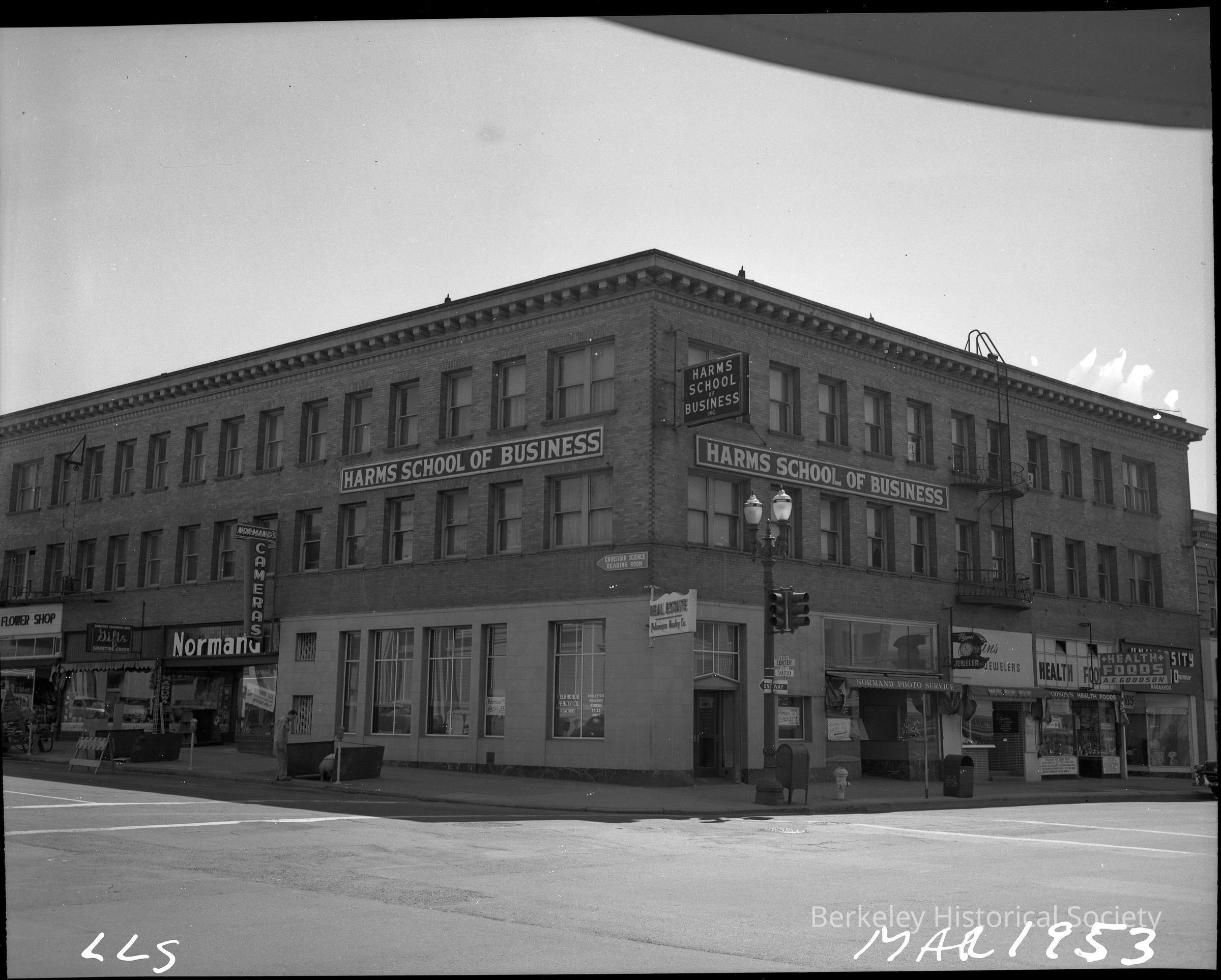 Building at Shattuck Avenue and Center; businesses on both streets.