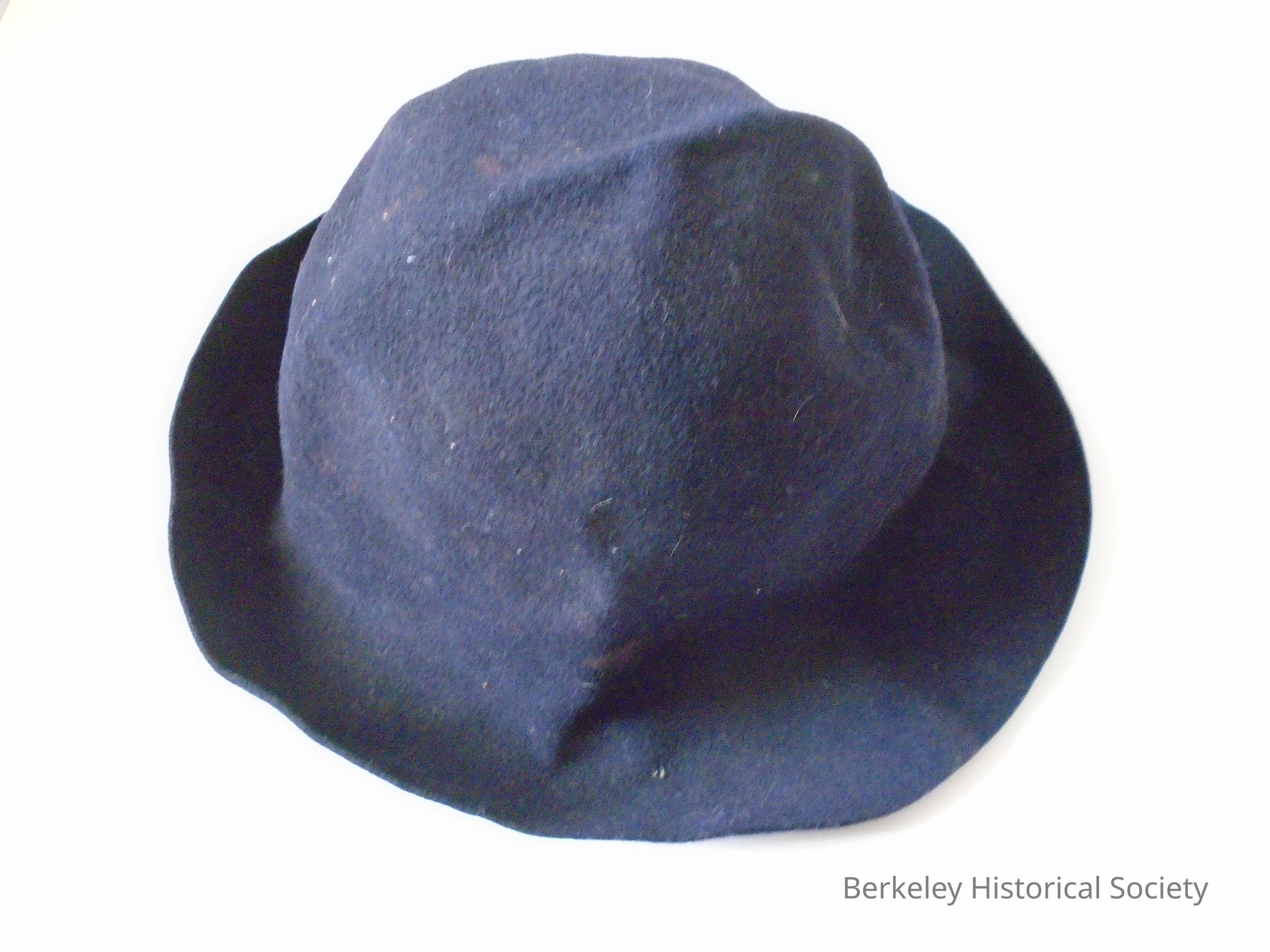Soft black felt hat with brim. Brim may be turned down or up. Canvas band stiffened with paint. Printed on band by manufacturer: "The (-)ure Crusher" (one letter unreadable). Paper size tag by bow on band: 7. "M.K.H.U." punched in brim. Printed in ink on inside of band: Peter S. Wong. Note with hat: UCB Freshman Hat 1923 Kelty Family.