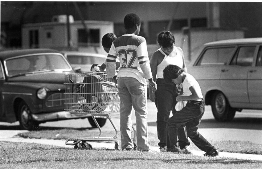 Hearst & 6th St. Boys playing on sidewalk.