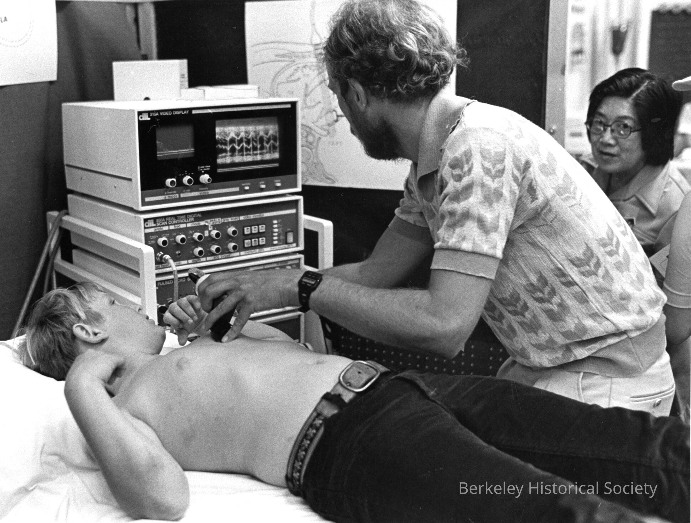 Doctor demonstrating electrograph to 12 year old.Made/Created