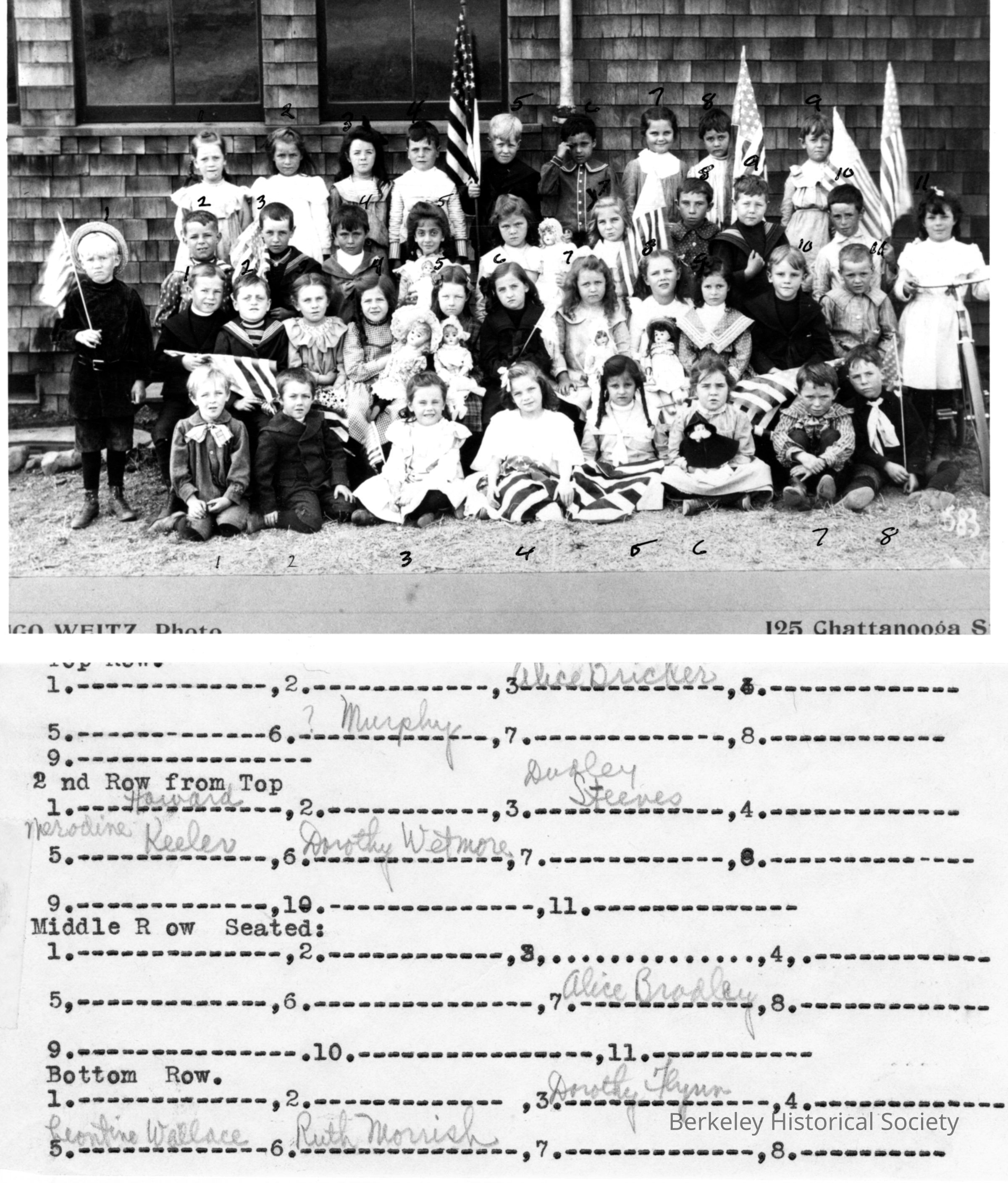 Class photo, standing outside. Several students identified.Other Names and Numbers