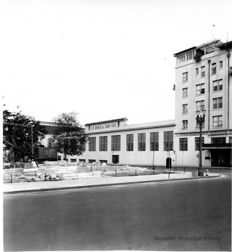 Harold Way side of building, with empty lot across street, site of Armstrong College.