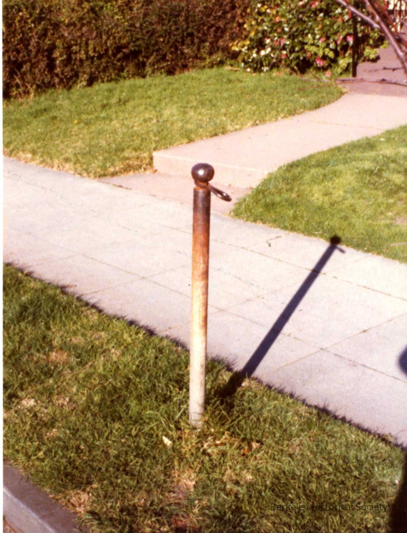 Metal hitching post still left in parkway on Hillegass Street.