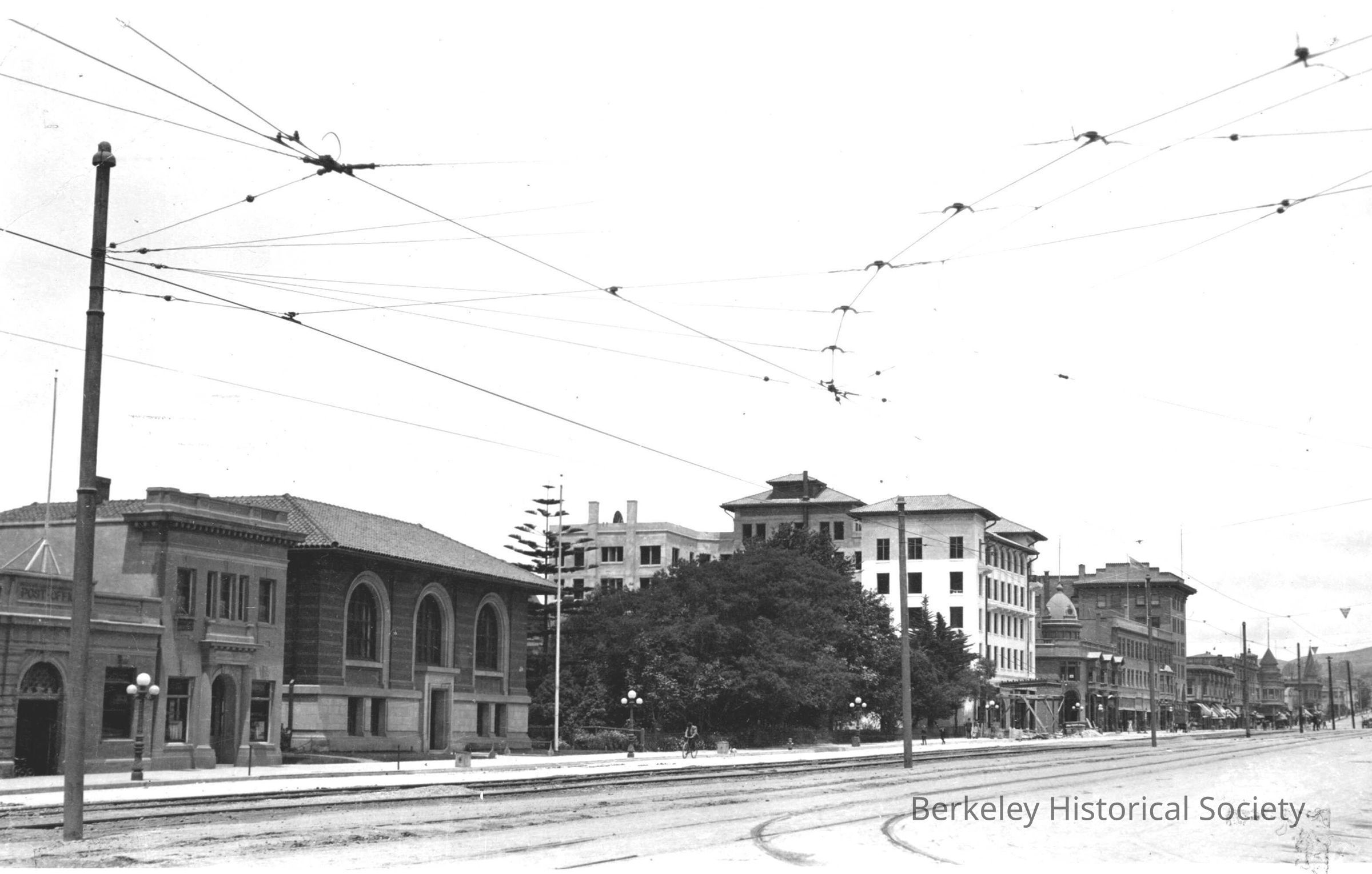 Berkeley Public Library, 2266 Shattuck, Post Office, 2274 Shattuck, Railroad Tracks, Hotel Shattuck, 2208 Shattuck, Home Savings Bank, 2268 Shattuck, Streetscape
