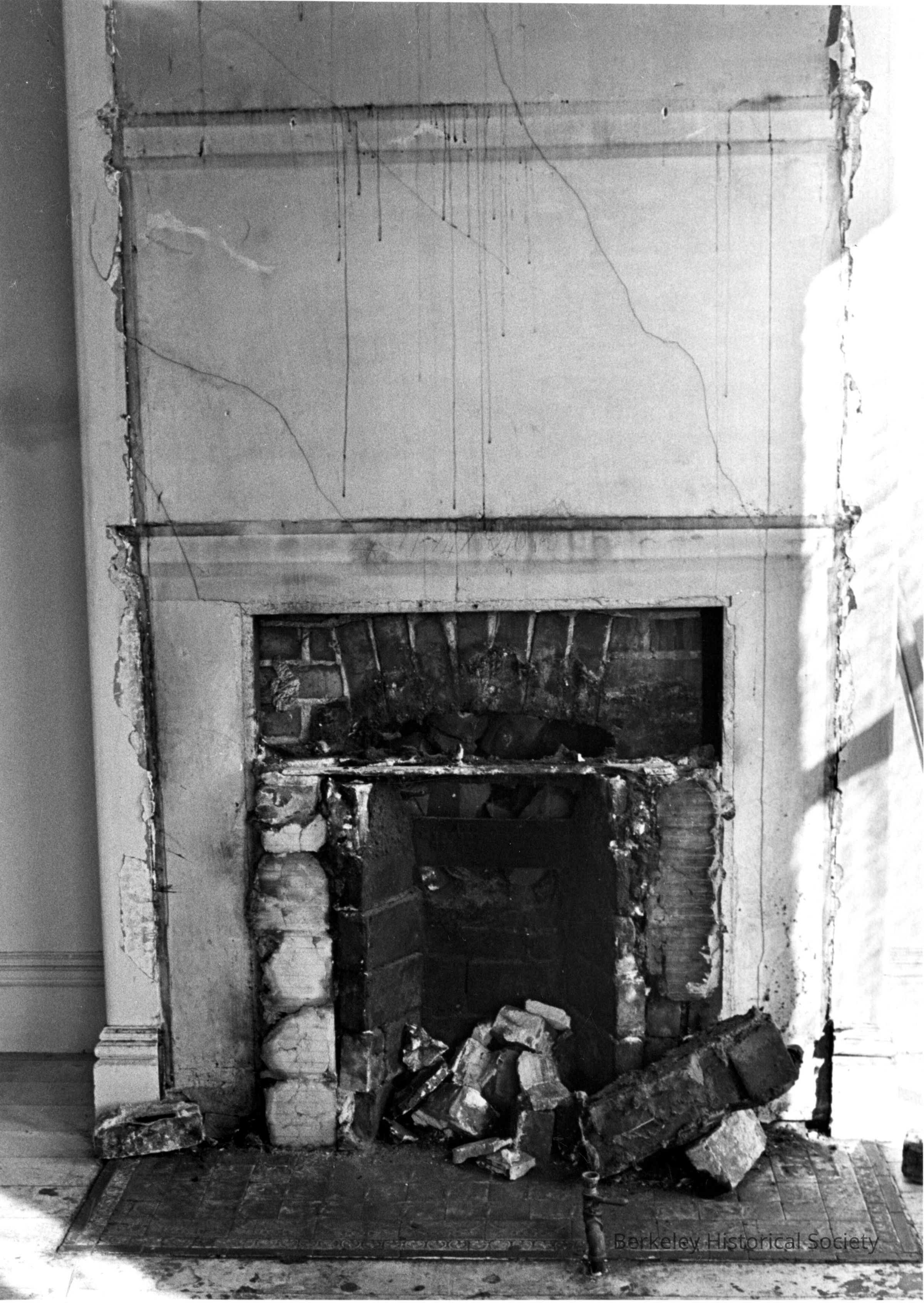 Fireplace of house partially boarded up, used by squattersOther Names and Numbers