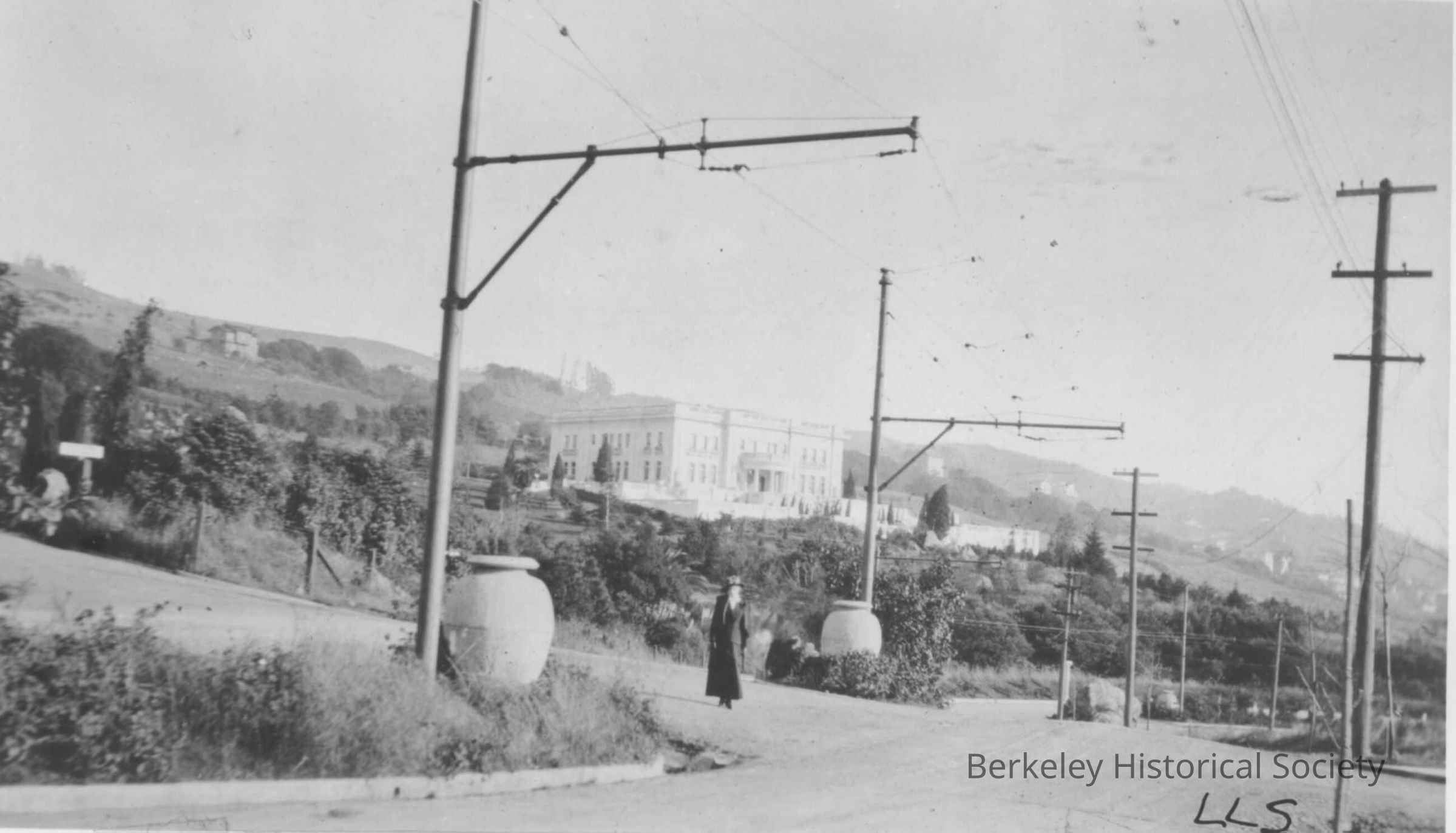 Spring Mansion (1912). View from Arlington Avenue; electric lines in view.