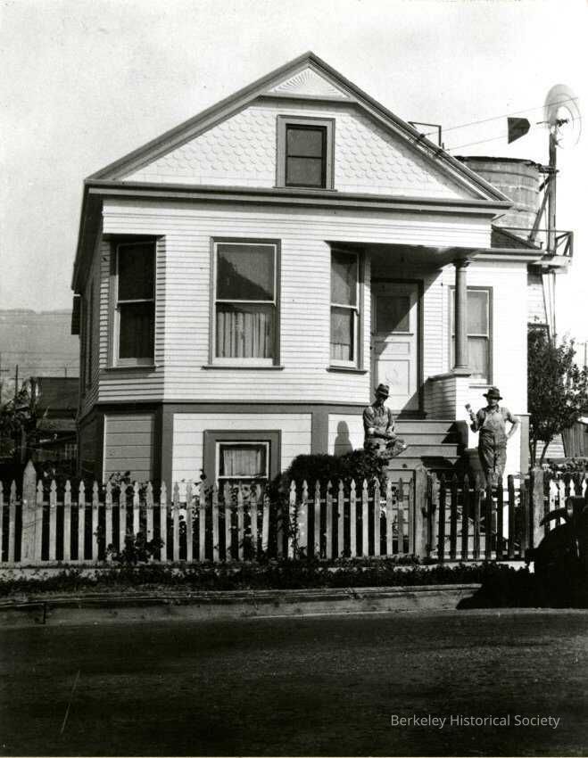 Residential house being painted with windmill in background. 1625 6th Street, near Cedar.
