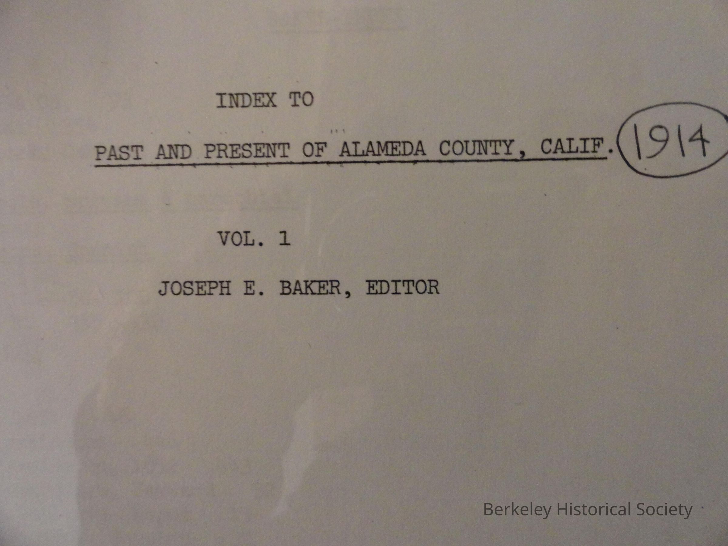 Index to Past and Present of Alameda County, Ca. Vol. 1. (Joseph E. Baker)Entry/Object ID