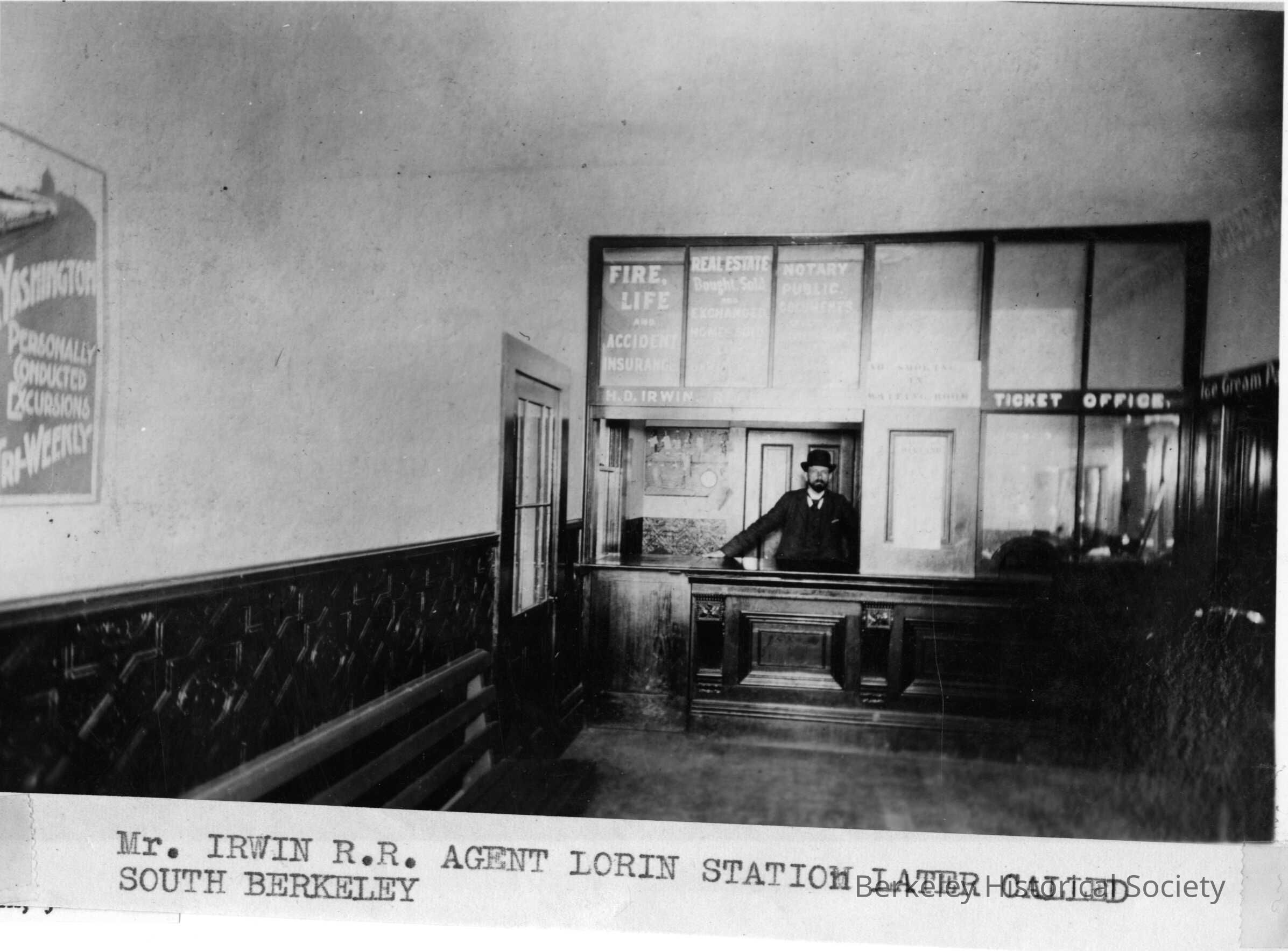 SP Depot, 1900. Mr. Irwin at office window. Lorin Station 325-190-3128