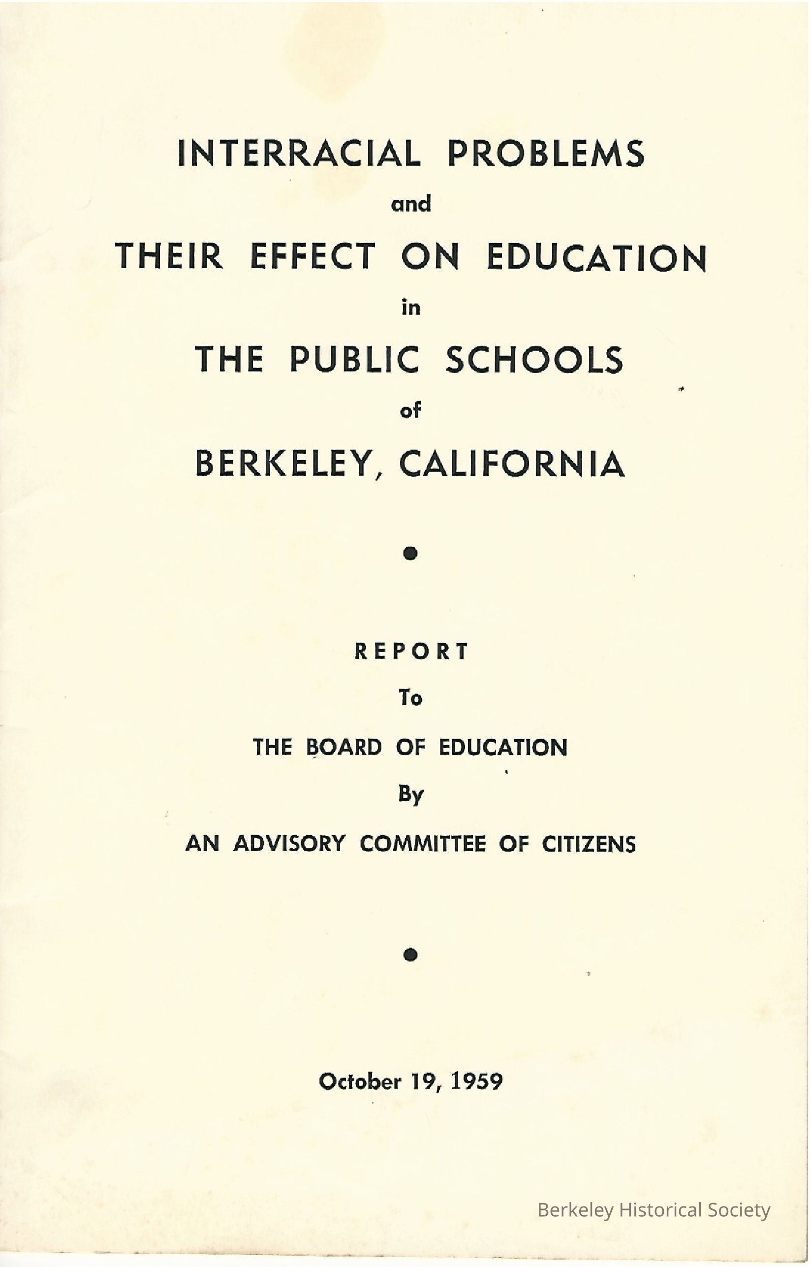 Committee to Study Certain Interracial Problems in the Berkeley Schools and Their Effect on Education.Lexicon