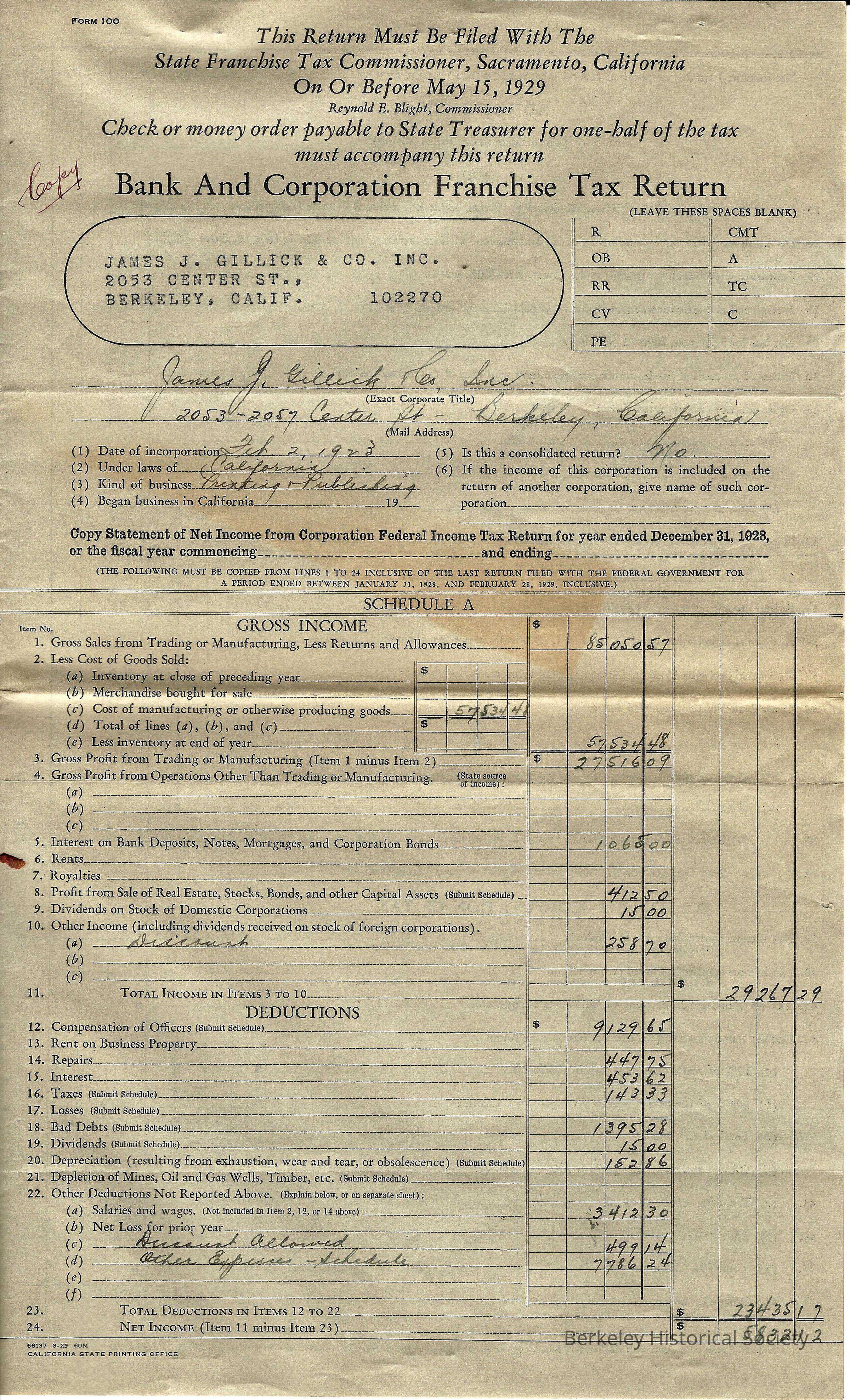 Berkeley, CA -- Businesses, Gillick Printing and PublishingArchive Details