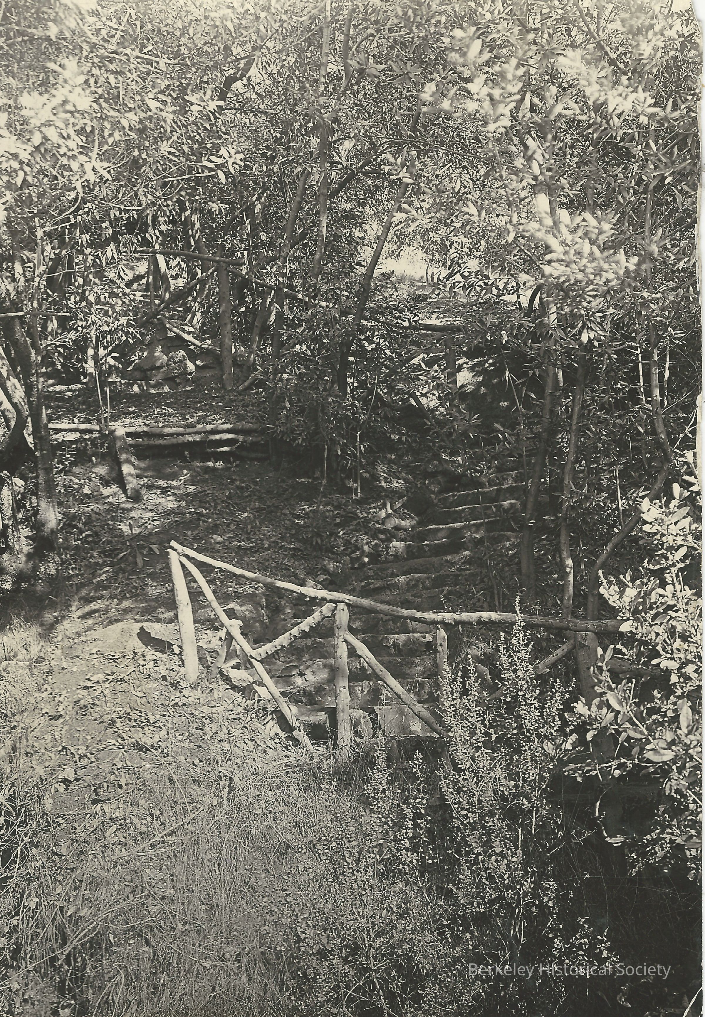 Stairs with rustic railing.Made/Created