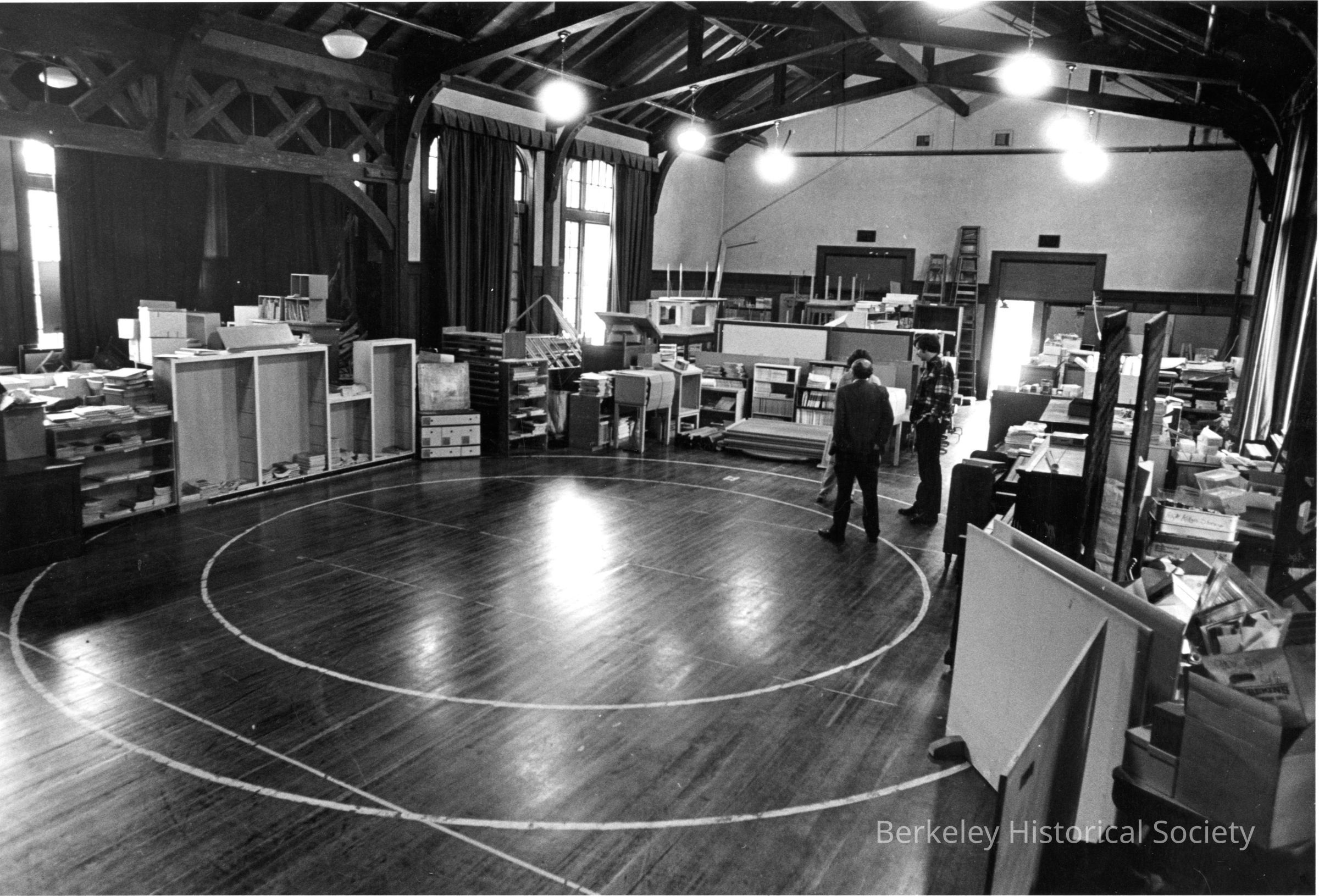 Auditorium, apparently used for storage.