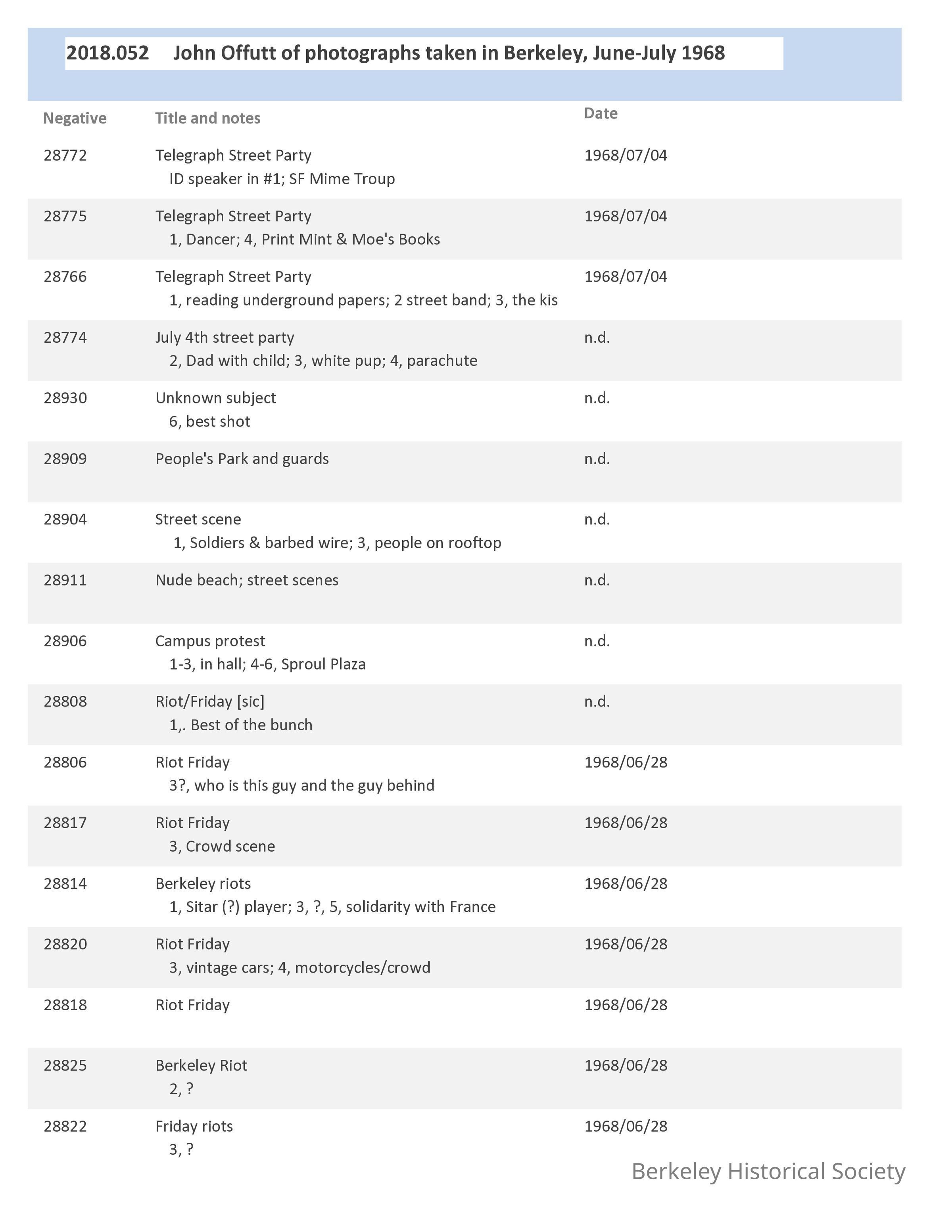 John Offutt Photographs taken in Berkeley June-July 1968.Entry/Object ID