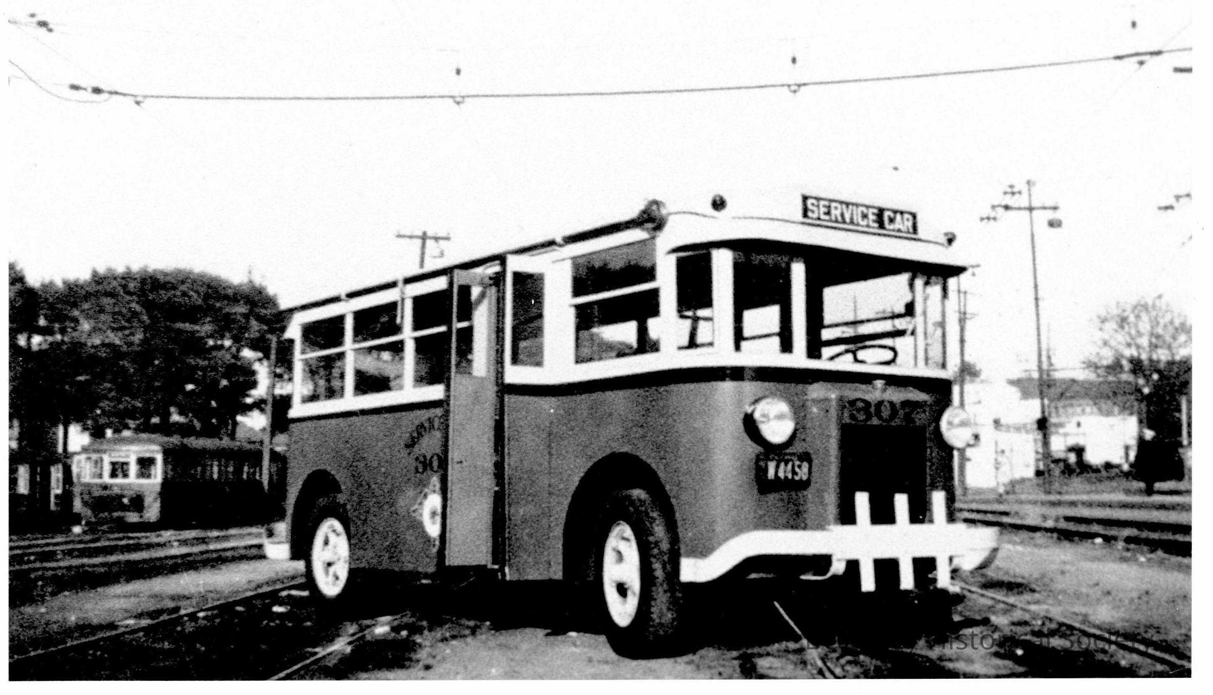 Central Carhouse, Oakland Key System bus Bus No. 307 being used as a work van