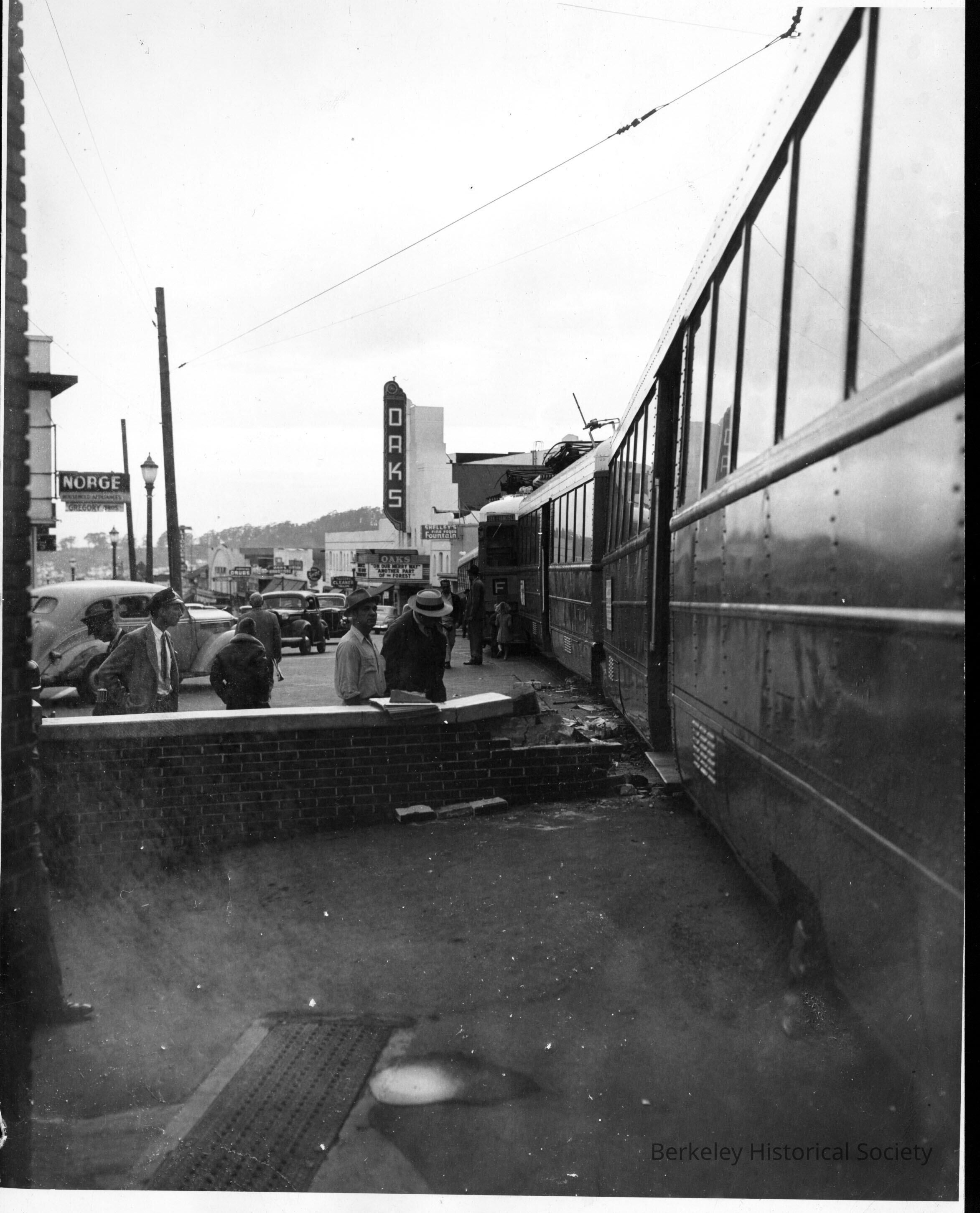 Solano Avenue and The Alameda, looking west along side of train; Oaks Theatre in background.Other Names and Numbers