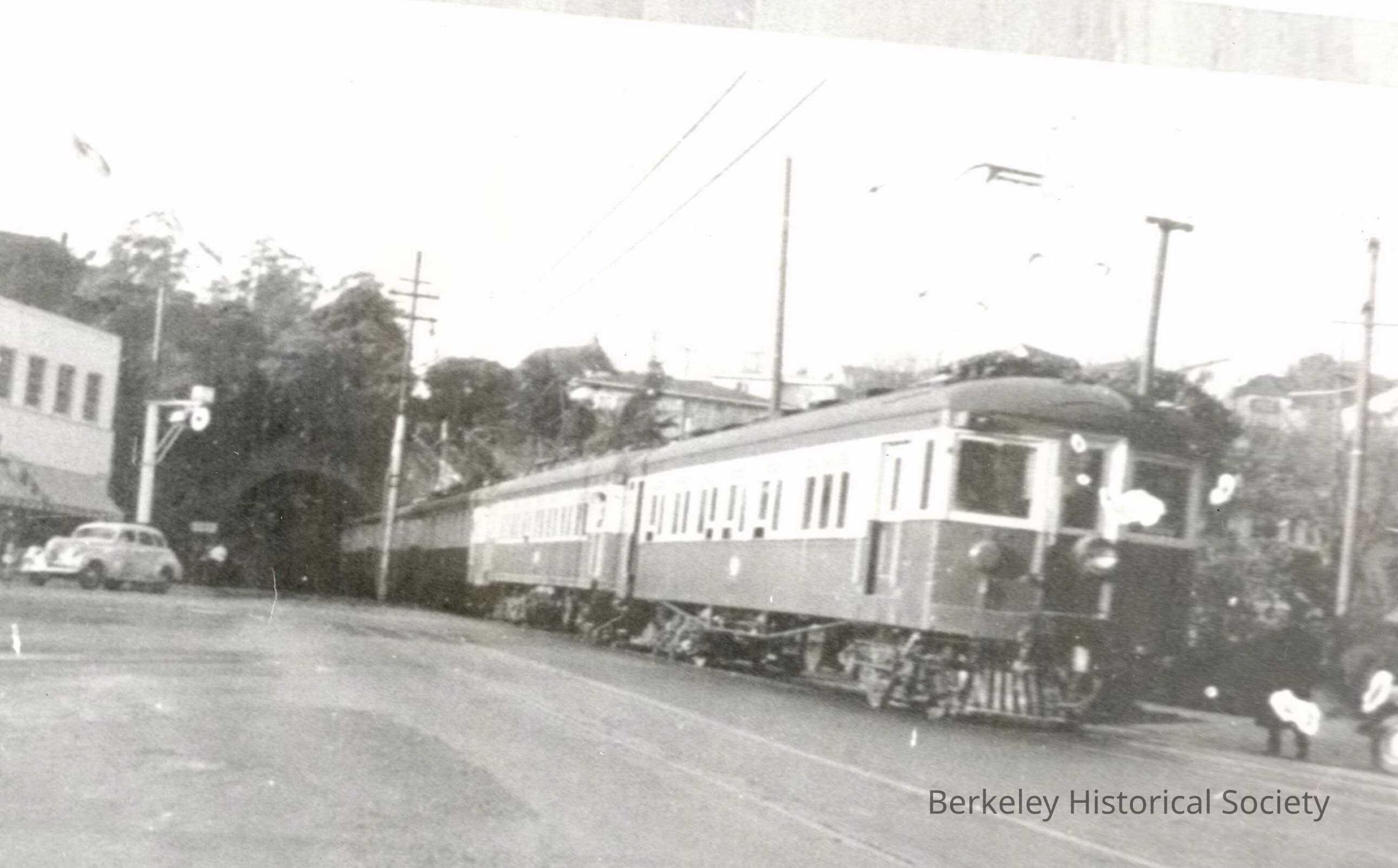BW, Key System Train "City of Berkeley" - (ex Sacramento Northern cars) Sutter and Hopkins 1946Made/Created