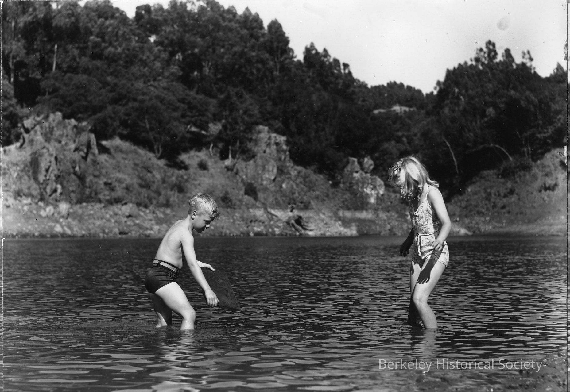 Two children playing in the water.