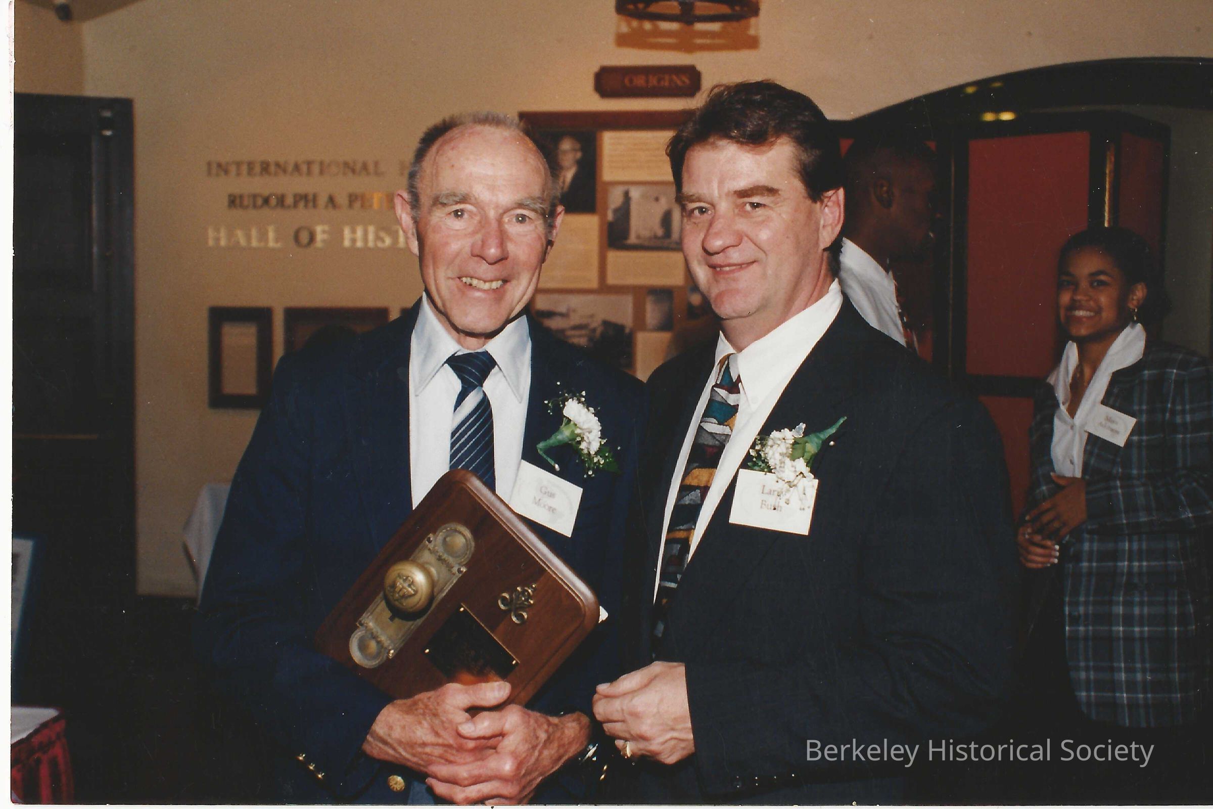 President, Berkeley/Albany YMCA; one with former president, M.E. 'Gus" Moore (color) 2 photos