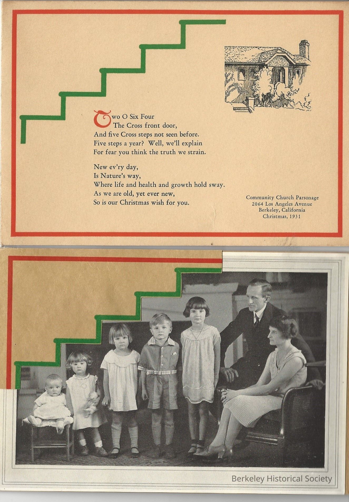 Each card has a poem by Cross and a photo of his family, 1929-1933, 1935-1947. One undated card a bit earlier than 1929