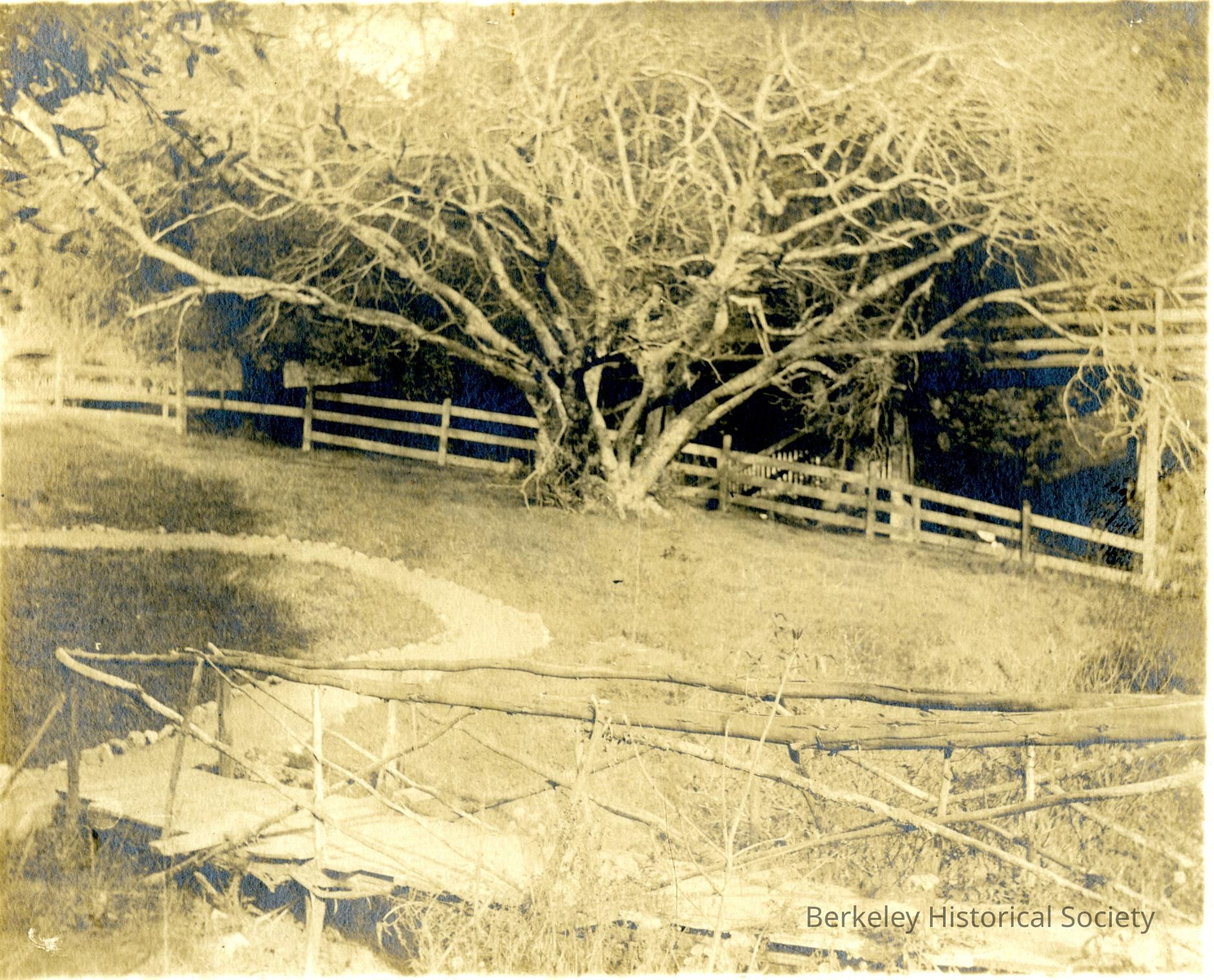 Oak tree, with wooden bridge in foreground over Codornices CreekOther Names and Numbers