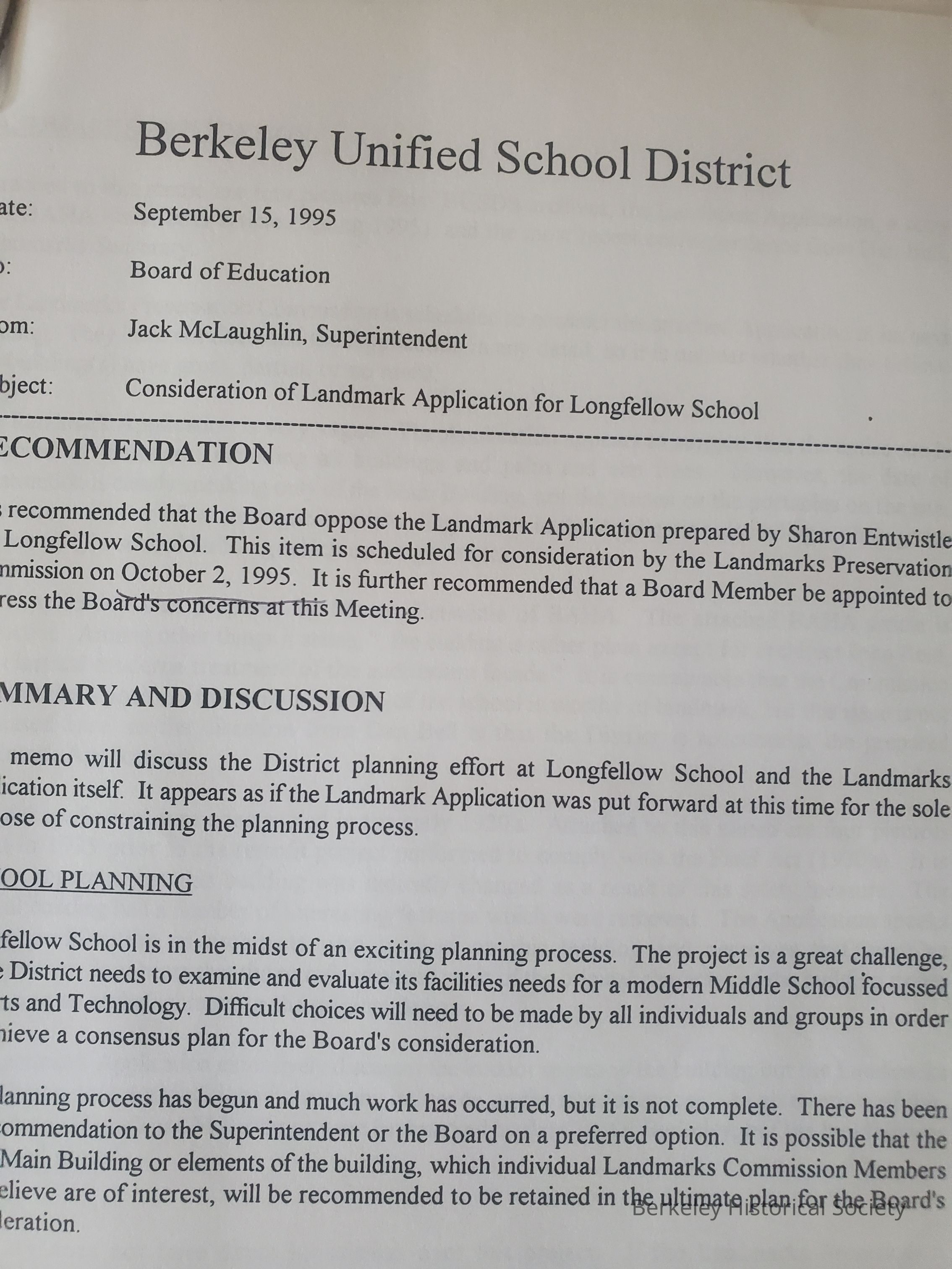 Longfellow School, Parent Teachers Association, LandmarksArchive Details