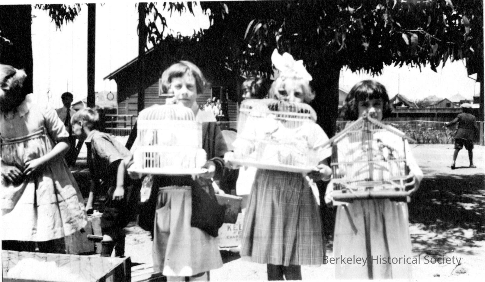 Three girls holding bird cages at pet show.Other Names and Numbers