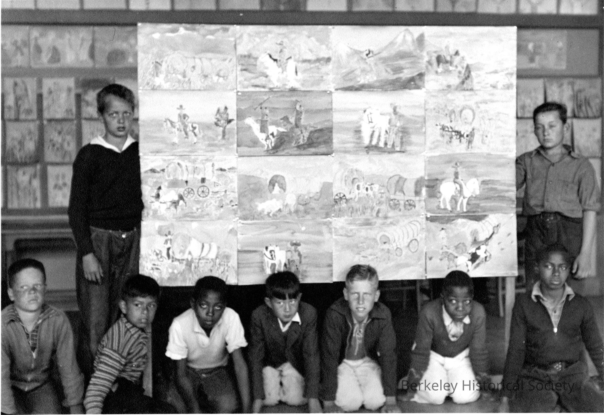 Group of boys with art work depicting western scenes. Class is not identified.Made/Created
