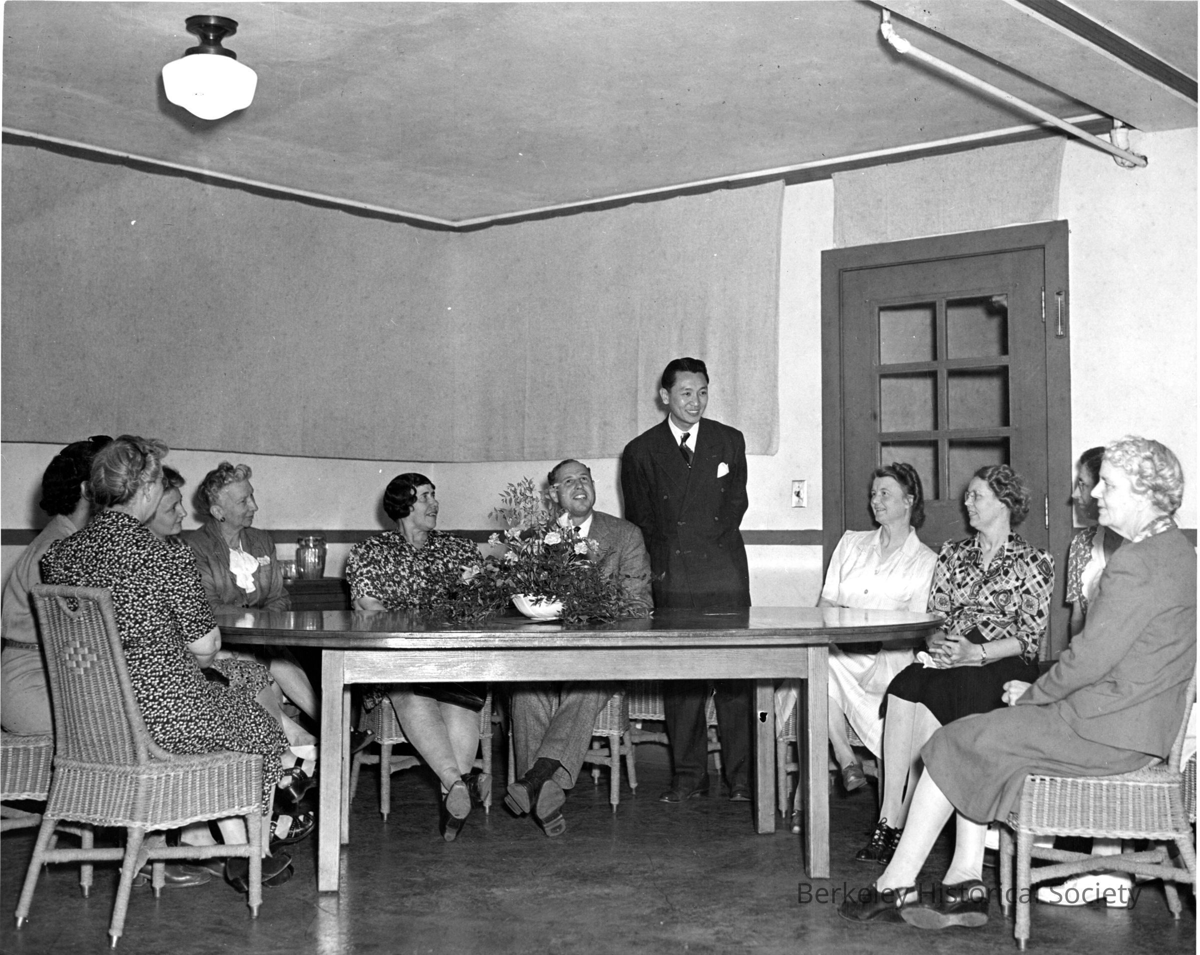 Visitor M. Chan talking to teachers seated around table.Other Names and Numbers