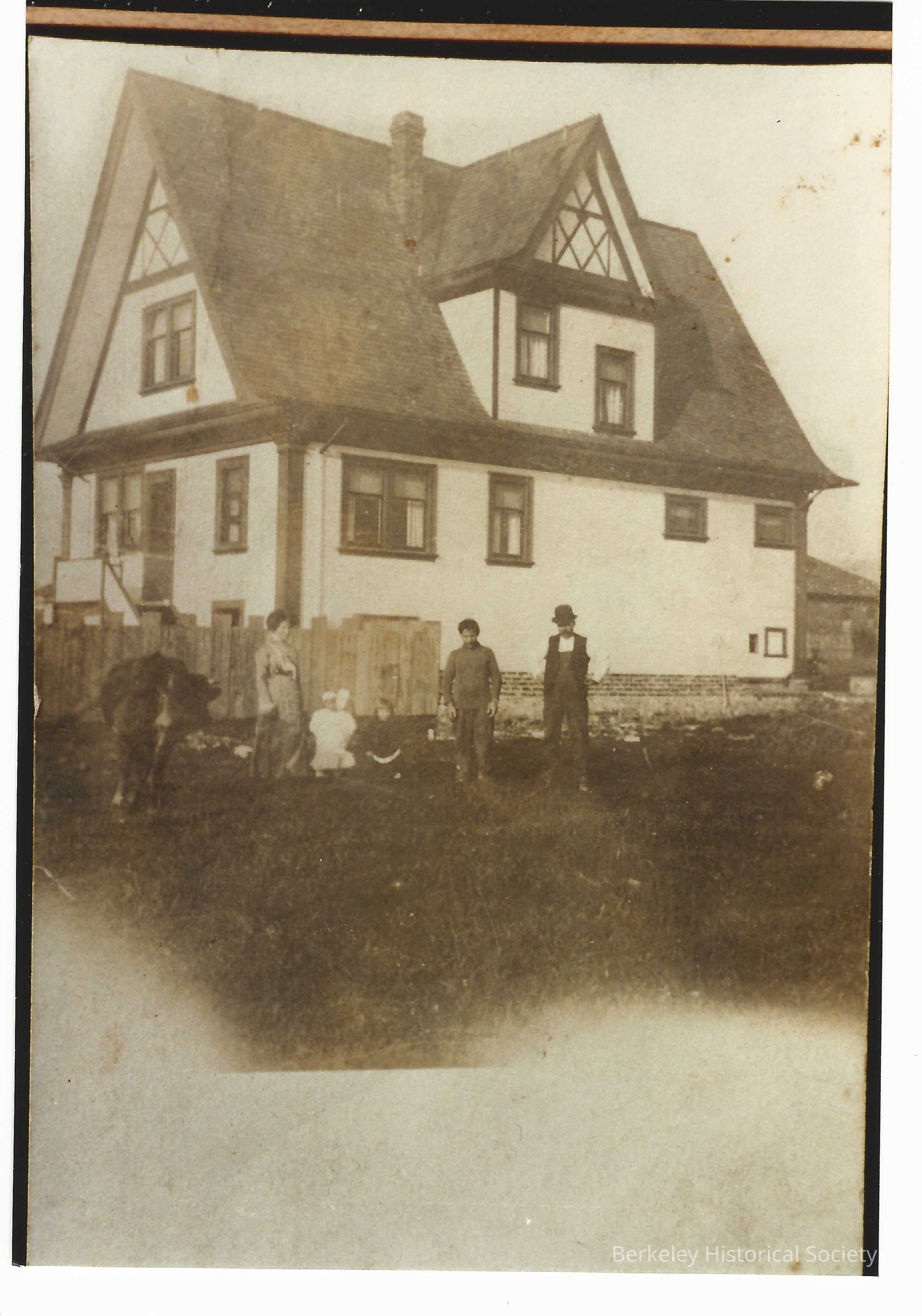 Lundgren residence, 2334 Curtis Street, with Ida and Andrew, children, Ida's brother. Cow to left of picture.Lexicon