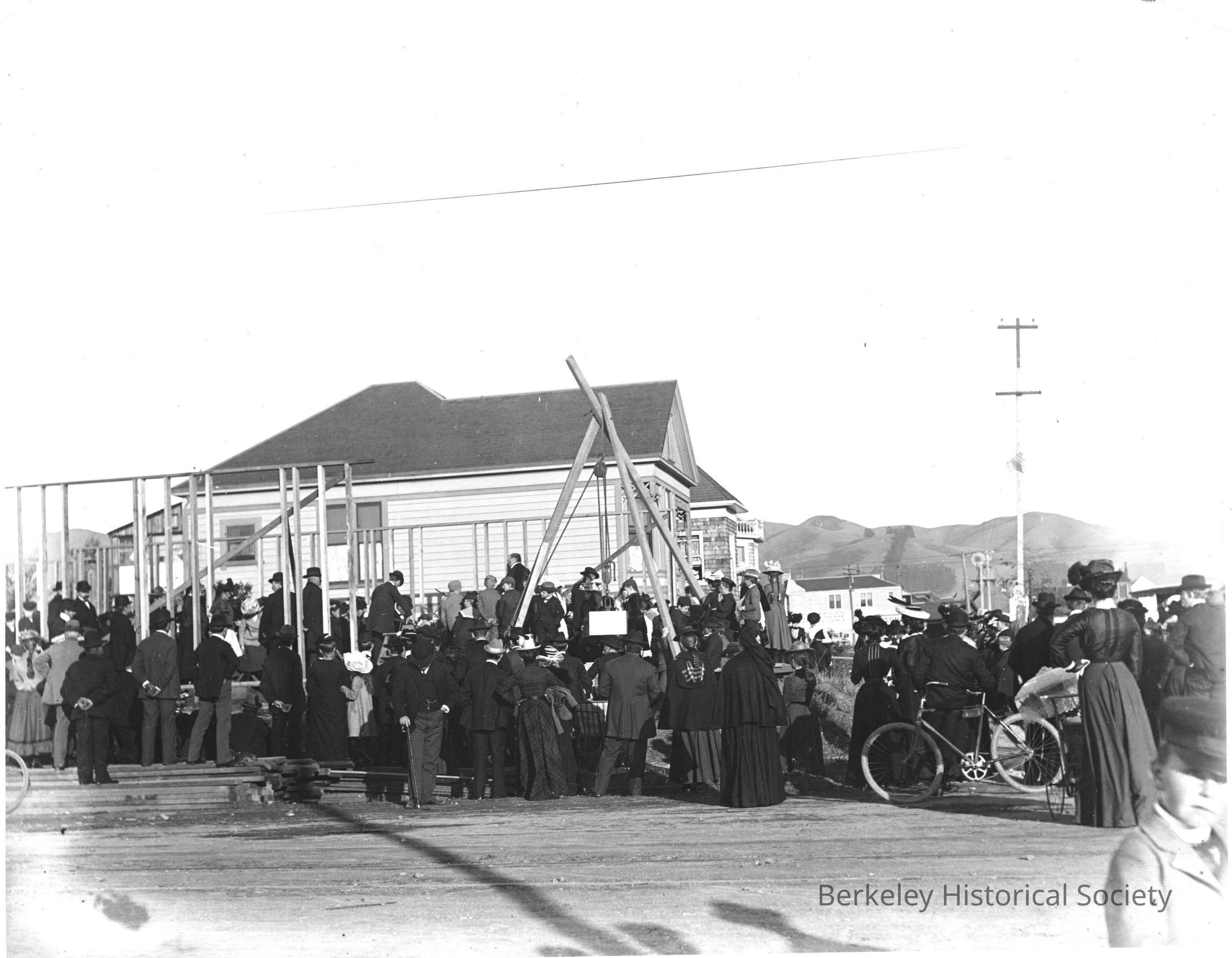 Luthern Church, laying cornerstone, Ashby and Grove, 1902. 2937 Grove Street. Initially called the German Lutheran Chuirch, later Bethlehem Lutheran Church.Made/Created