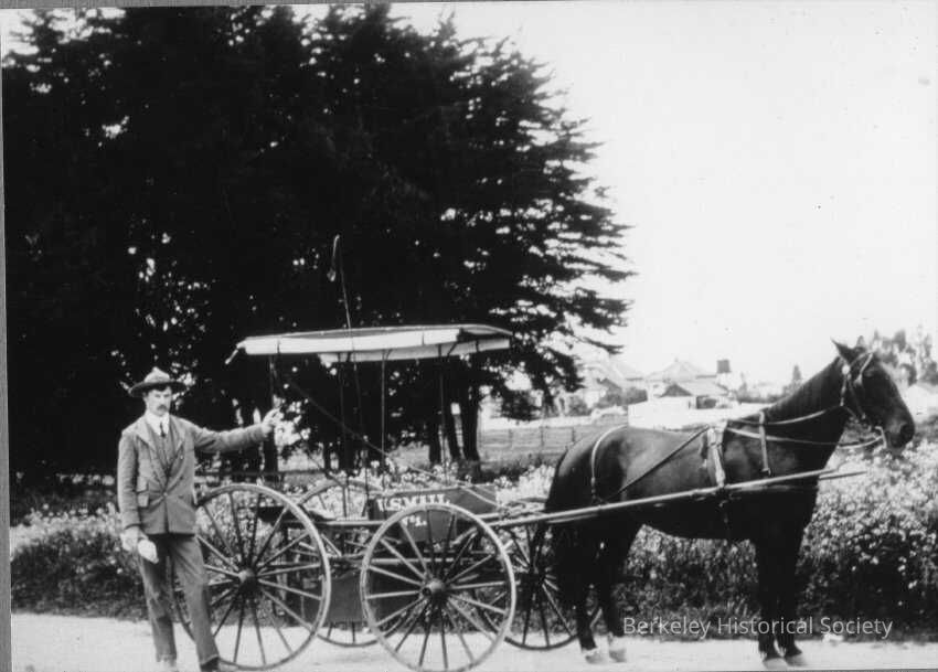 US mail wagon; buggy with mailman and horse, 1880s