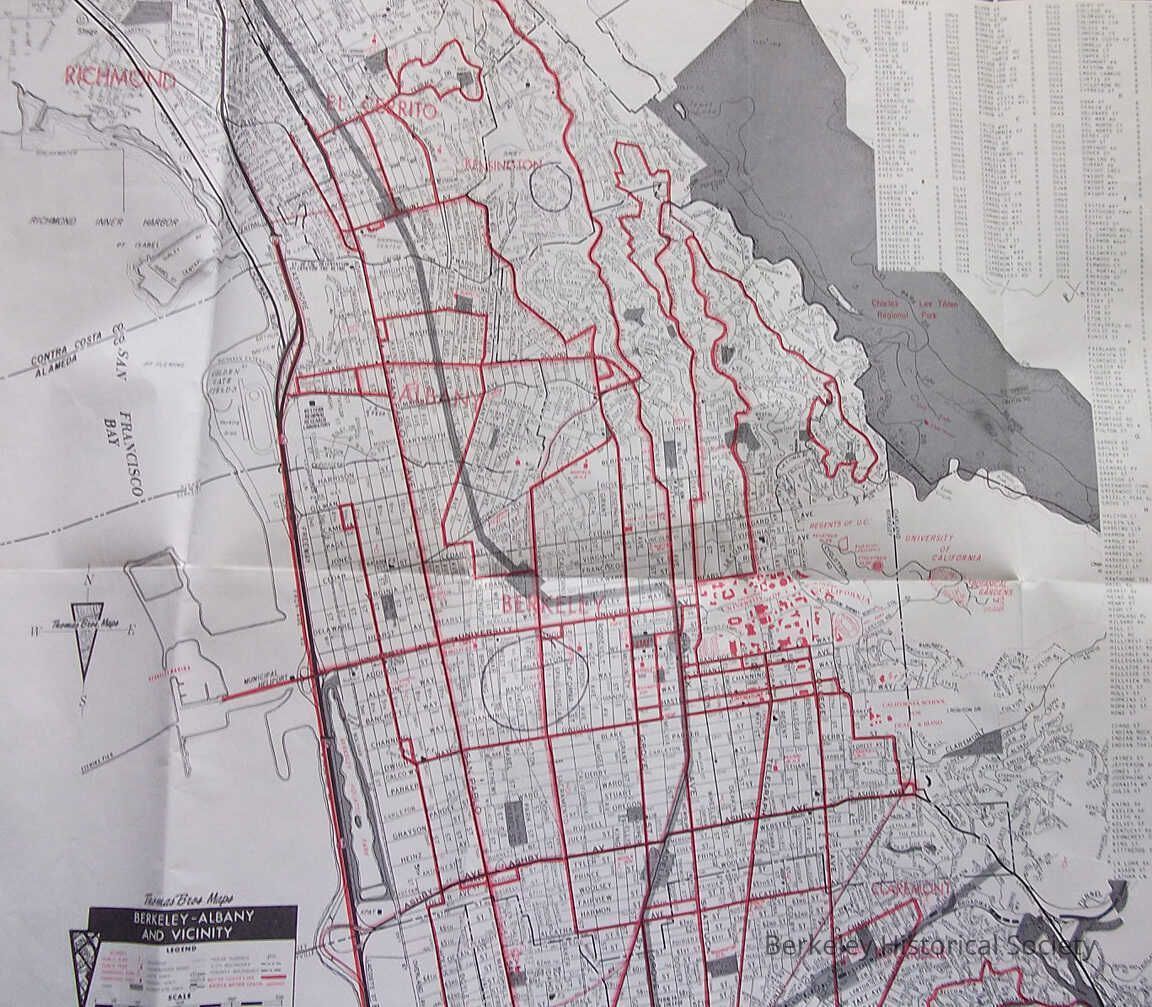 Street map of Berkeley, Major streets in red. Street index, Guest guide, location map,