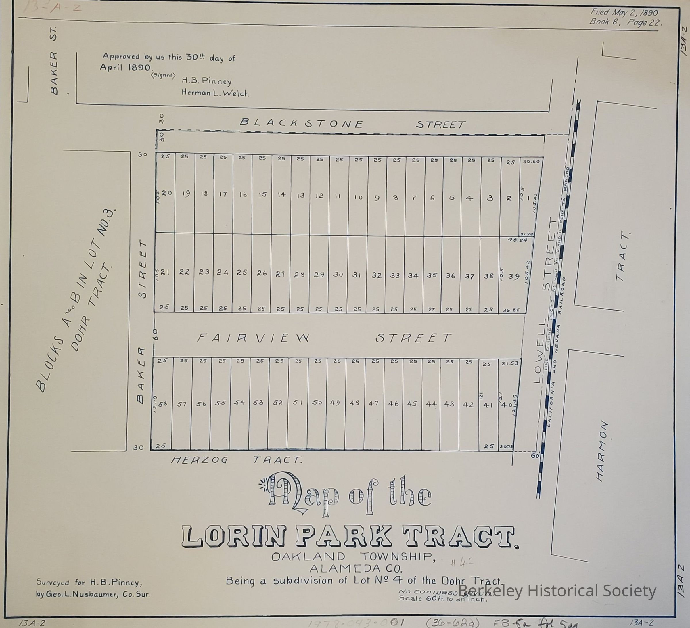 Map of the Lorin Park Tract. Oakland Township, Alameda Co, 1890, being a subdivision of Lot No. 4 of the Dohr TractEntry/Object ID