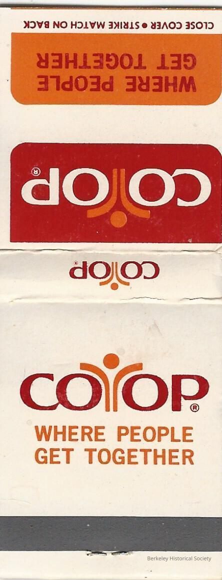 Matchbook advertising COOP. White paper with orange and brown design and text: " "COOP WHERE PEOPLE GET TOGETHER". (3 identical books.