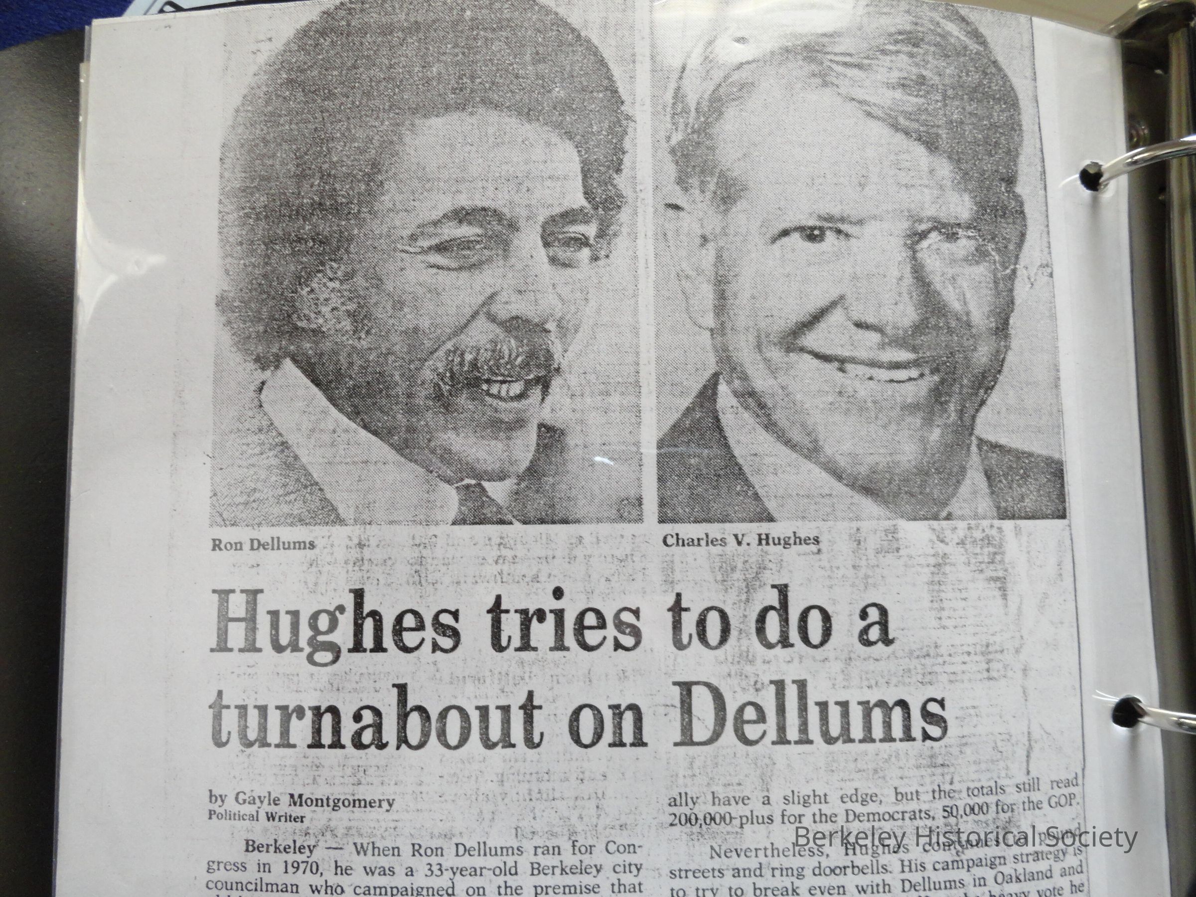 Contains campaign literature, people involved in campaign, financial information, clippings. Hughes lost to Ron Dellums