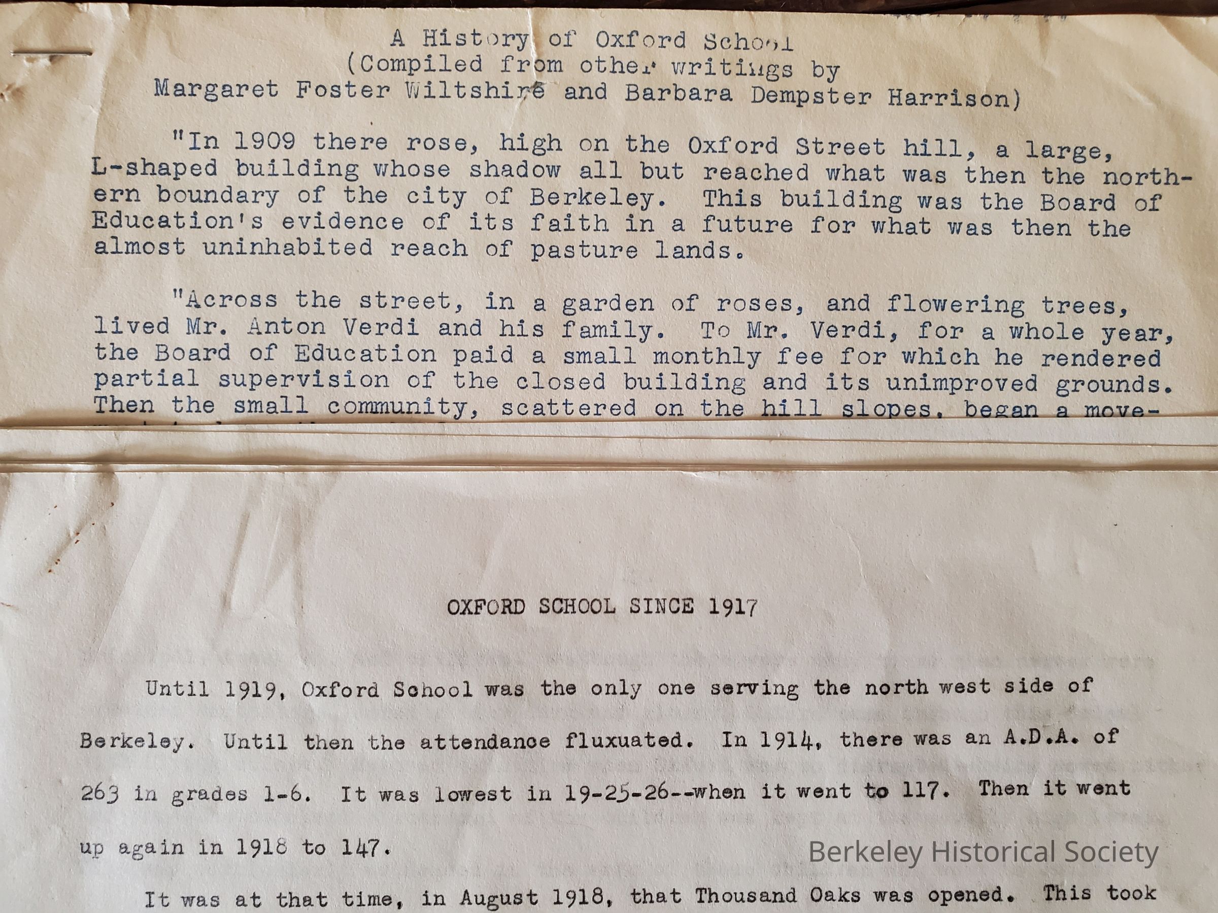 Materials relating to Oxford School, Berkeley, Calif.Entry/Object ID
