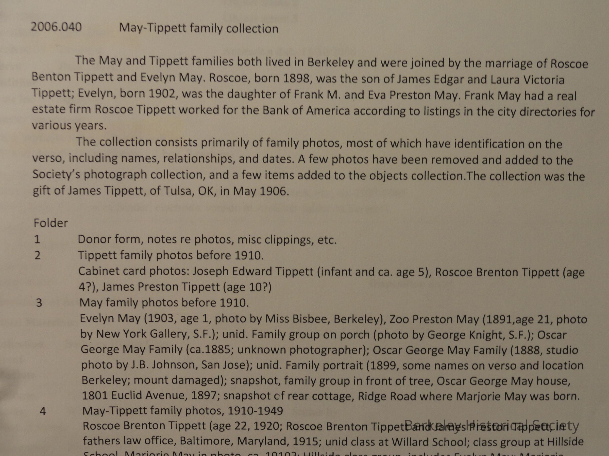 May-Tippett family collectionEntry/Object ID