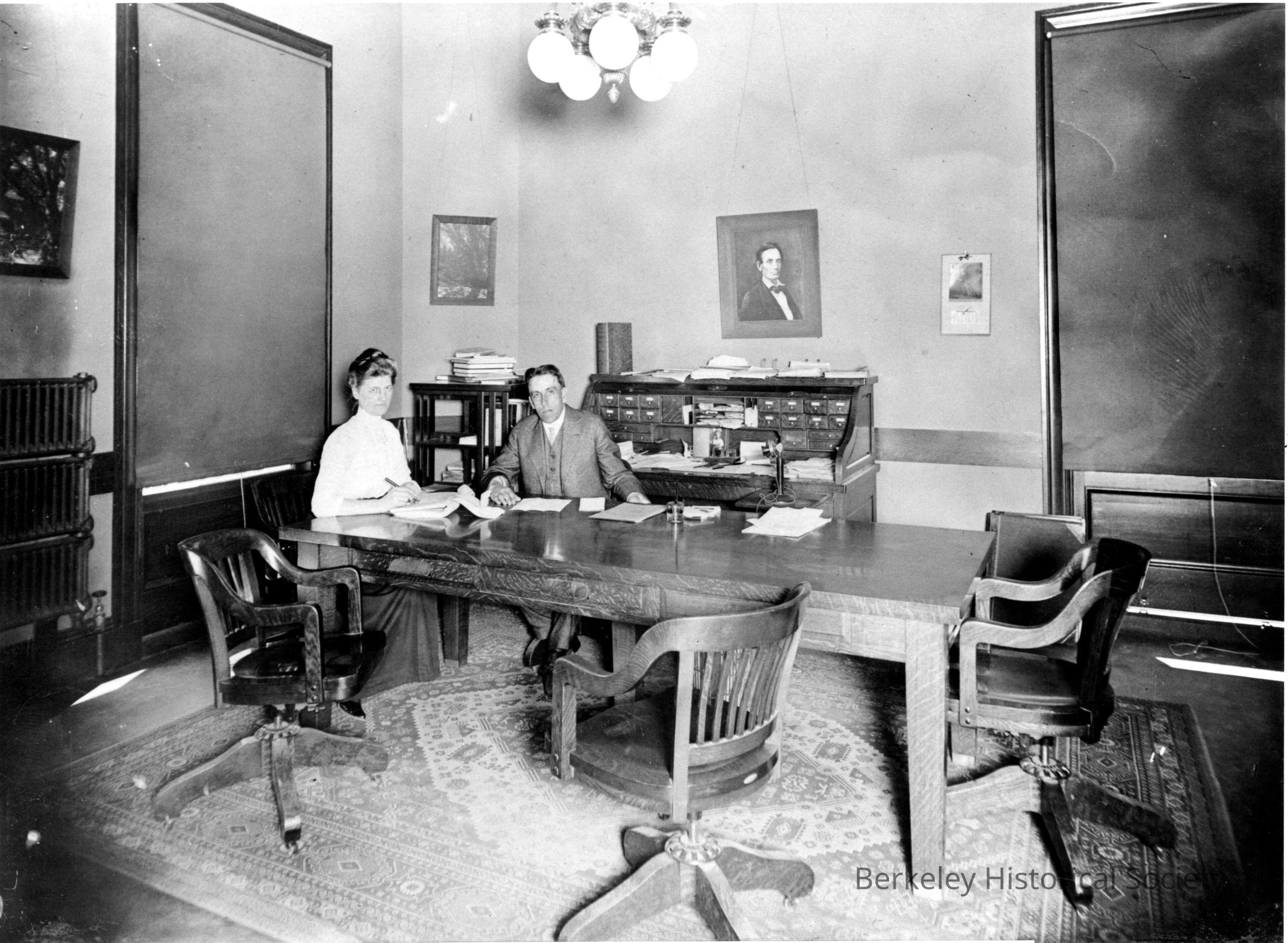 Heywood and secretary Annie E. Black in mayor's office.Made/Created